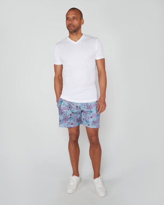 SILUS HANDCUT FLORAL INTERLOCK SHORTS - BLUE