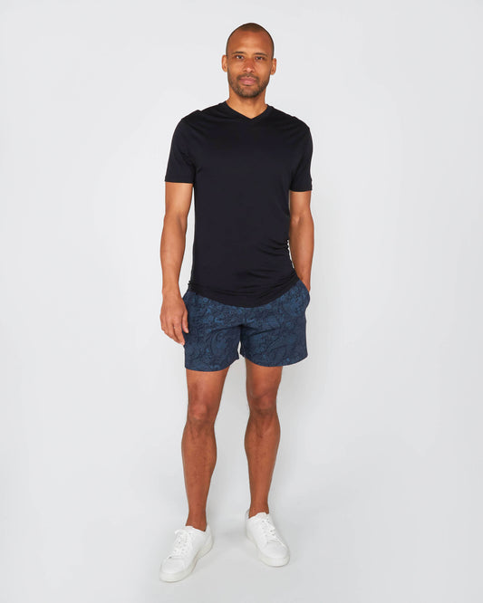 SILUS PAISLEY ROMANCE INTERLOCK SHORTS - NAVY