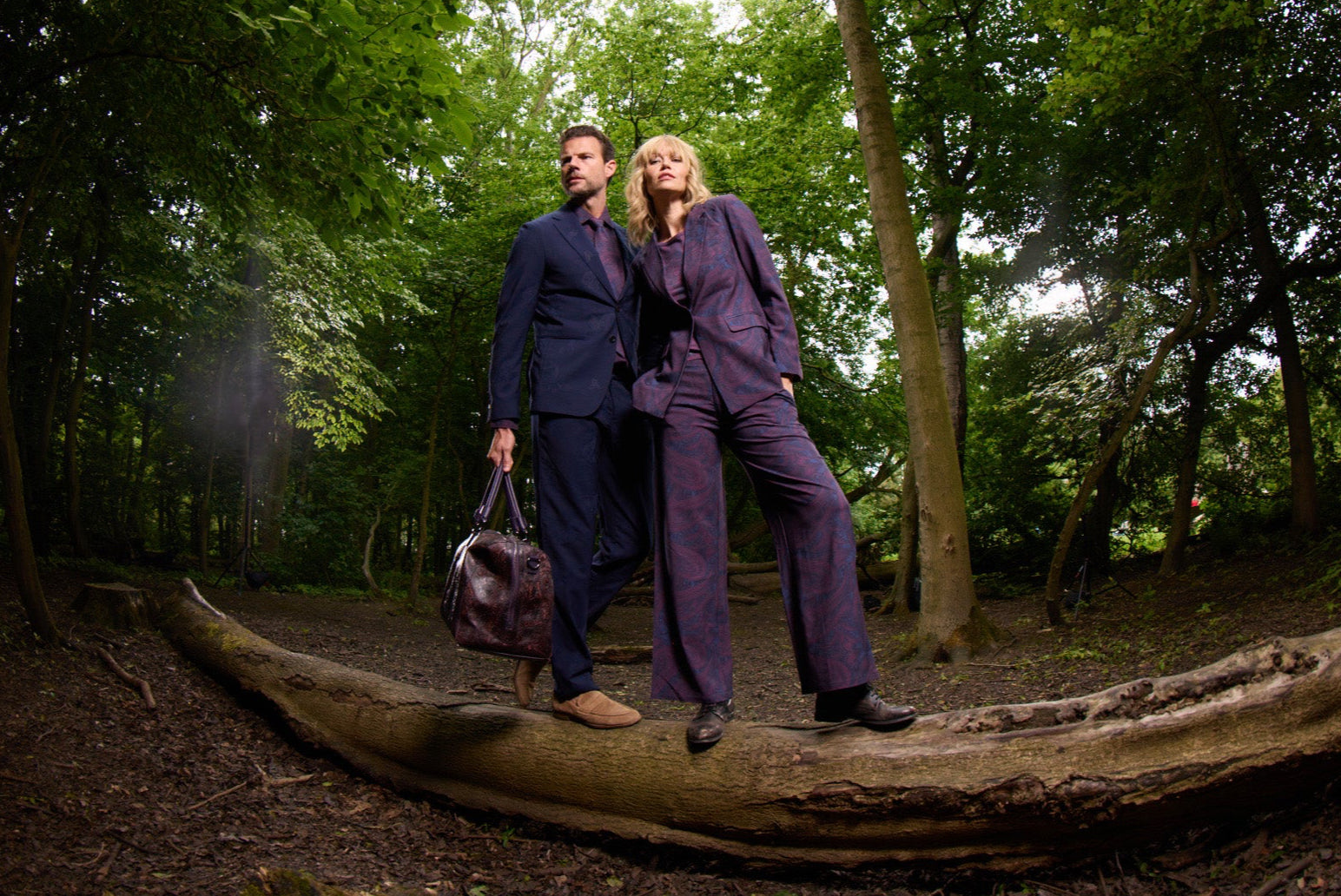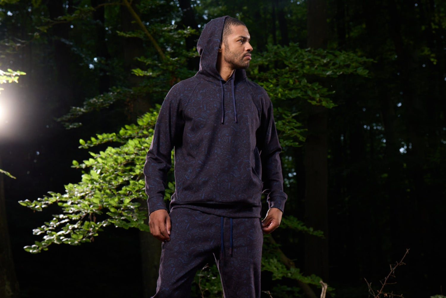 Relaxed silhouettes in sueded stretch cotton spandex, designed for modern comfort and style.