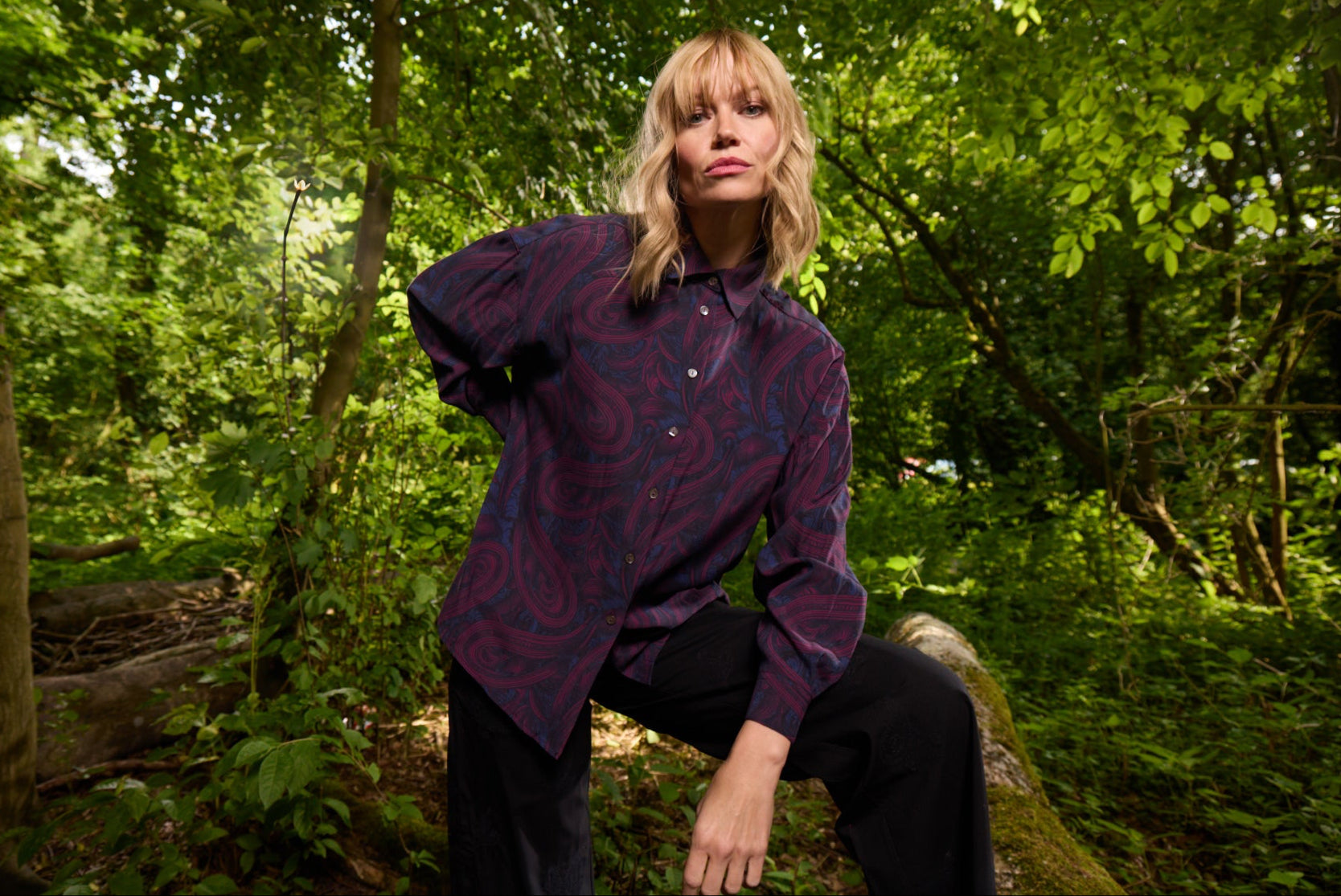 SOPHIE SILK OVERSIZED SHIRT - SOFTBLOOM NAVY