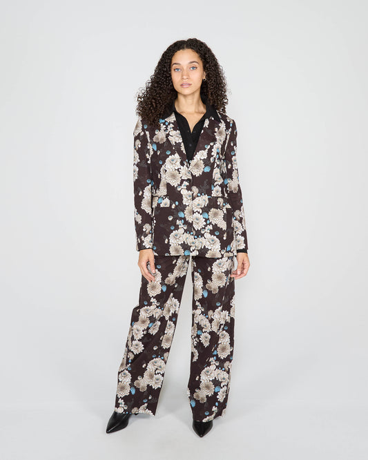 JANE SERIOUS FLORAL TAILORED BLAZER - BLACK