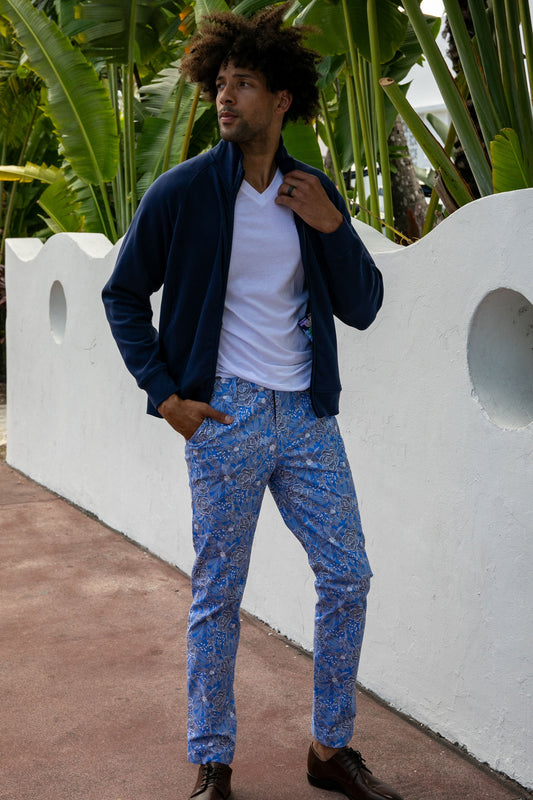 NEVILLE MADRID PAISLEY FULL-ZIP JACKET - NAVY