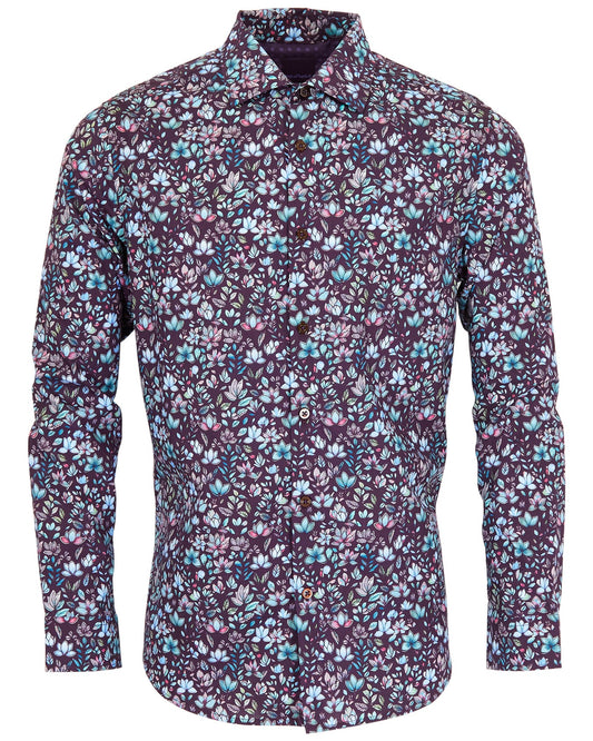 NIGEL AUGUSTUS FLORAL SHIRT - PLUM