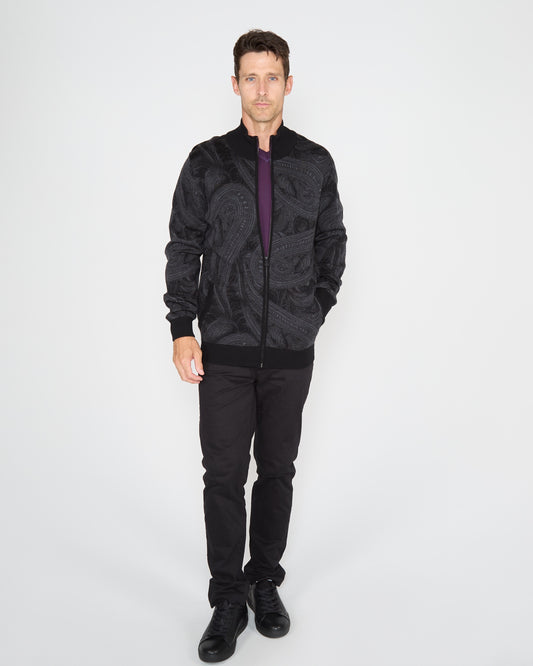FREDERICK BADALONA FULL-ZIP CARDIGAN - CHARCOAL