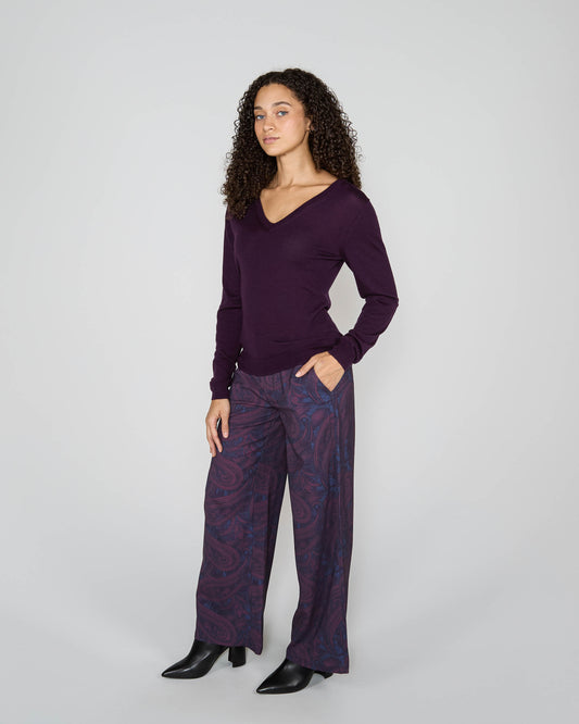 SASHA V-NECK SWEATER - PLUM