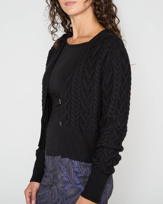 SAMANTHA TEXTURED CABLE KNIT SWEATER - BLACK