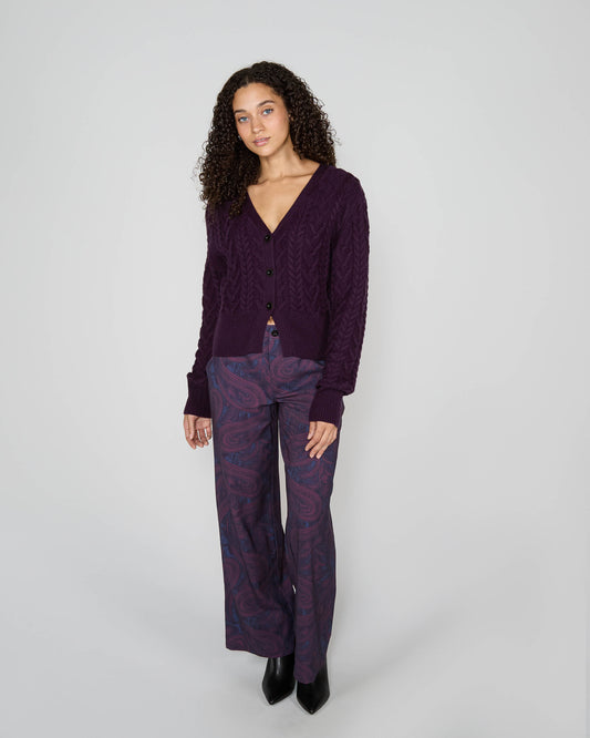 SAMANTHA TEXTURED CABLE KNIT SWEATER - PLUM