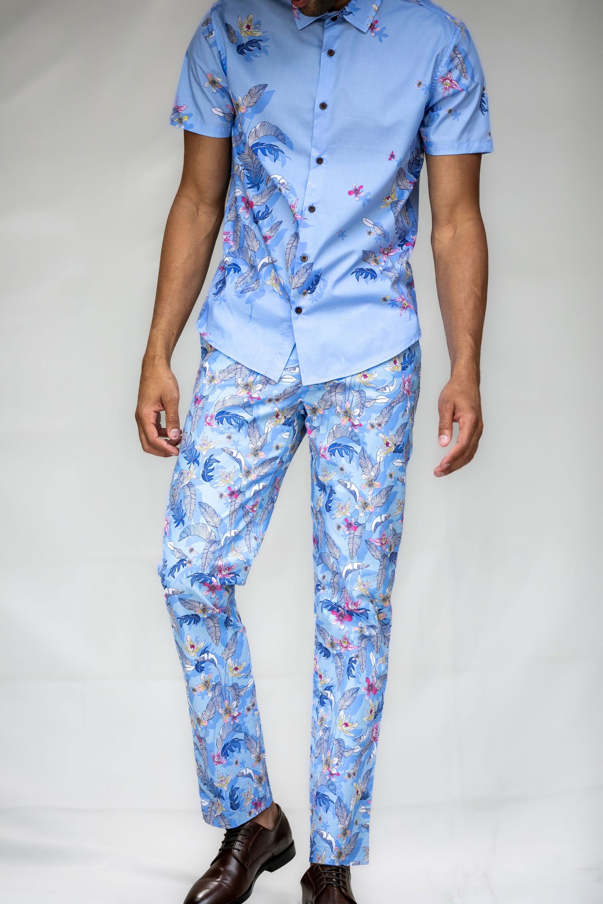 We've developed a pattern for making trousers that look and feel amazing. This flat front pant is made of a luxurious smooth butter fabric in peached stretch twill for a fit and comfort our customers love. It's also printed with gorgeous patterns that don't shy away from fun