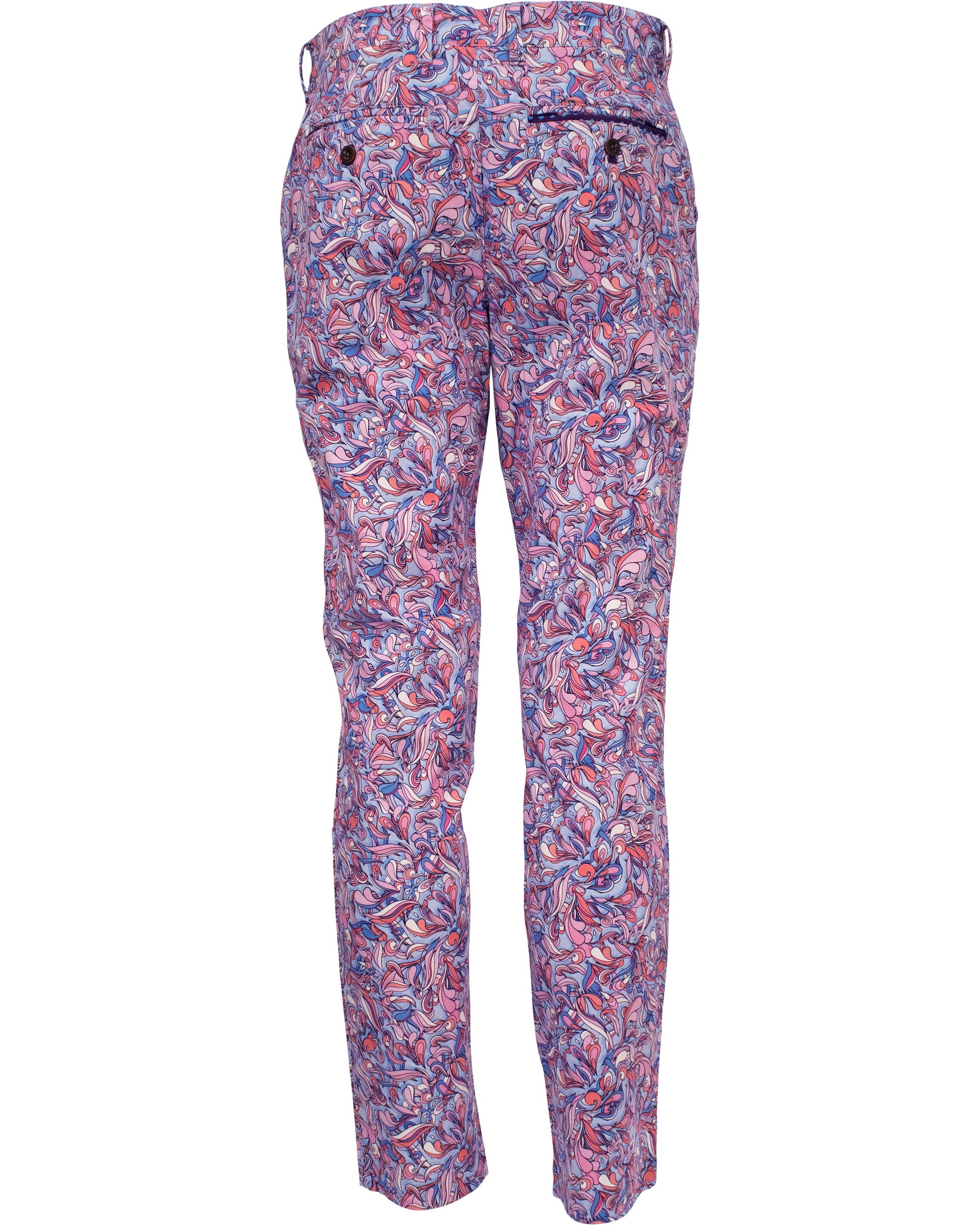 We've developed a pattern for making trousers that look and feel amazing. This flat front pant is made of a luxurious smooth butter fabric in peached stretch twill for a fit and comfort our customers love. It's also printed with gorgeous patterns that don't shy away from fun