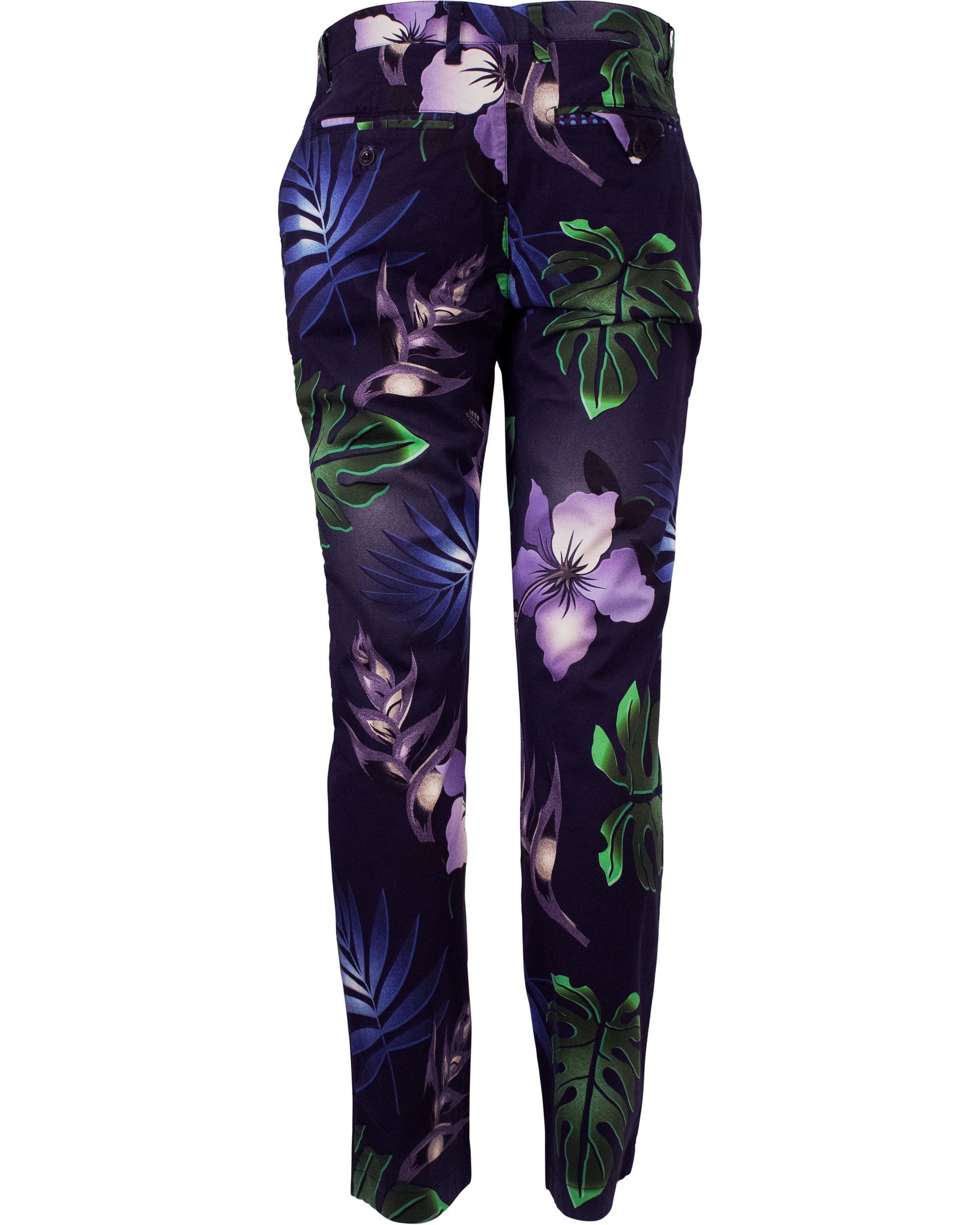 We've developed a pattern for making trousers that look and feel amazing. This flat front pant is made of a luxurious smooth butter fabric in peached stretch twill for a fit and comfort our customers love. It's also printed with gorgeous patterns that don't shy away from fun