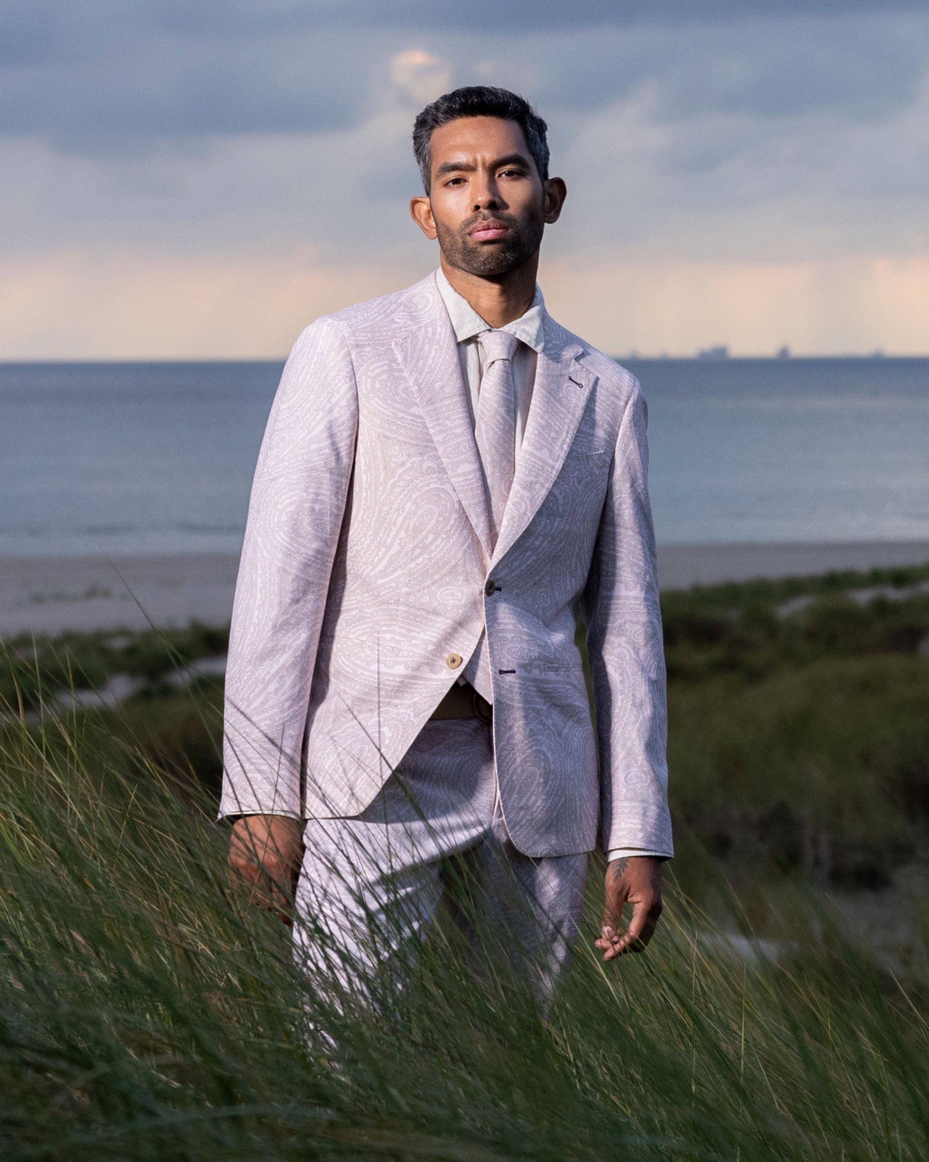 JUDD FULLY LINED WILD PAISLEY OXFORD TAILORED WOOL BLAZER - IVORY