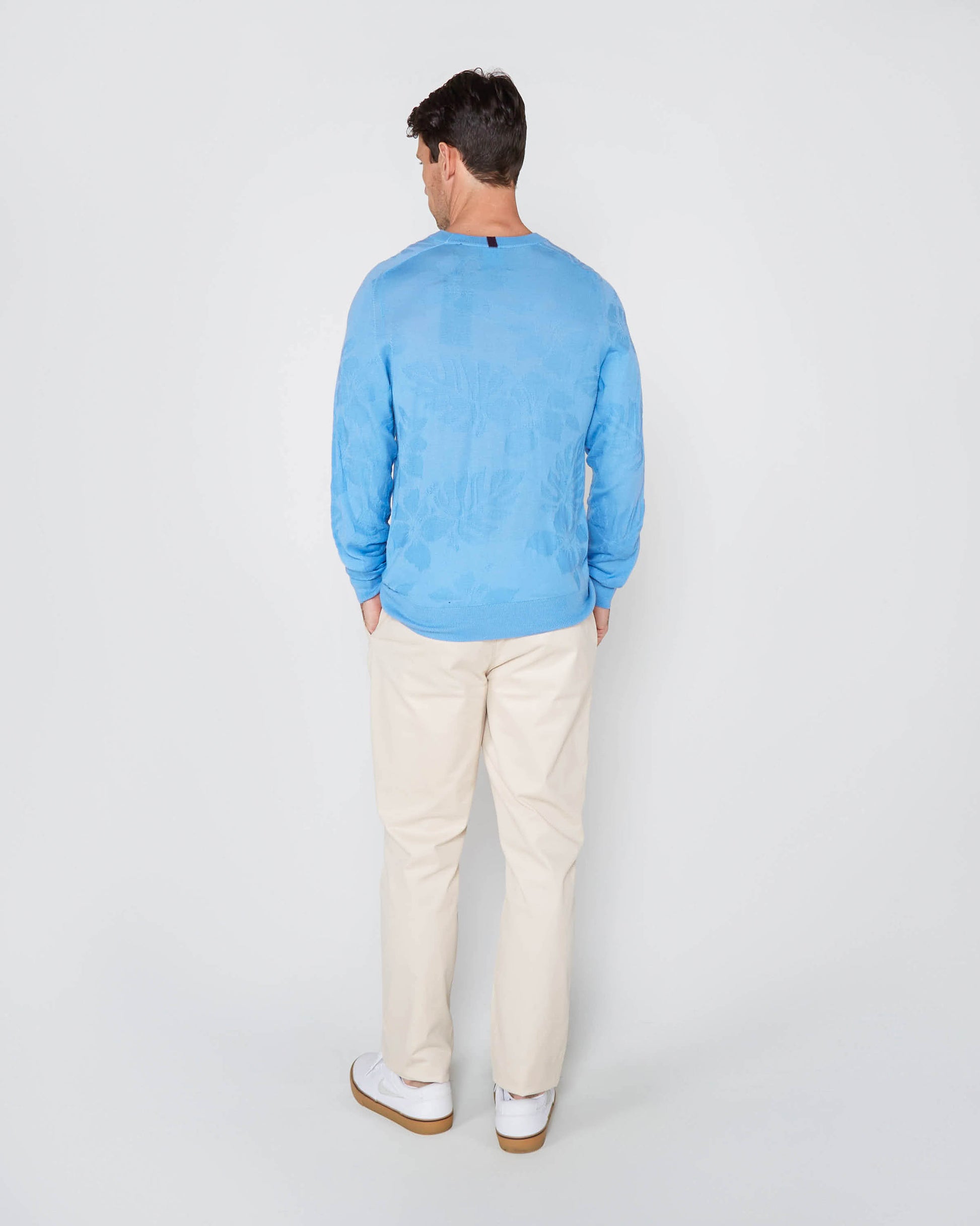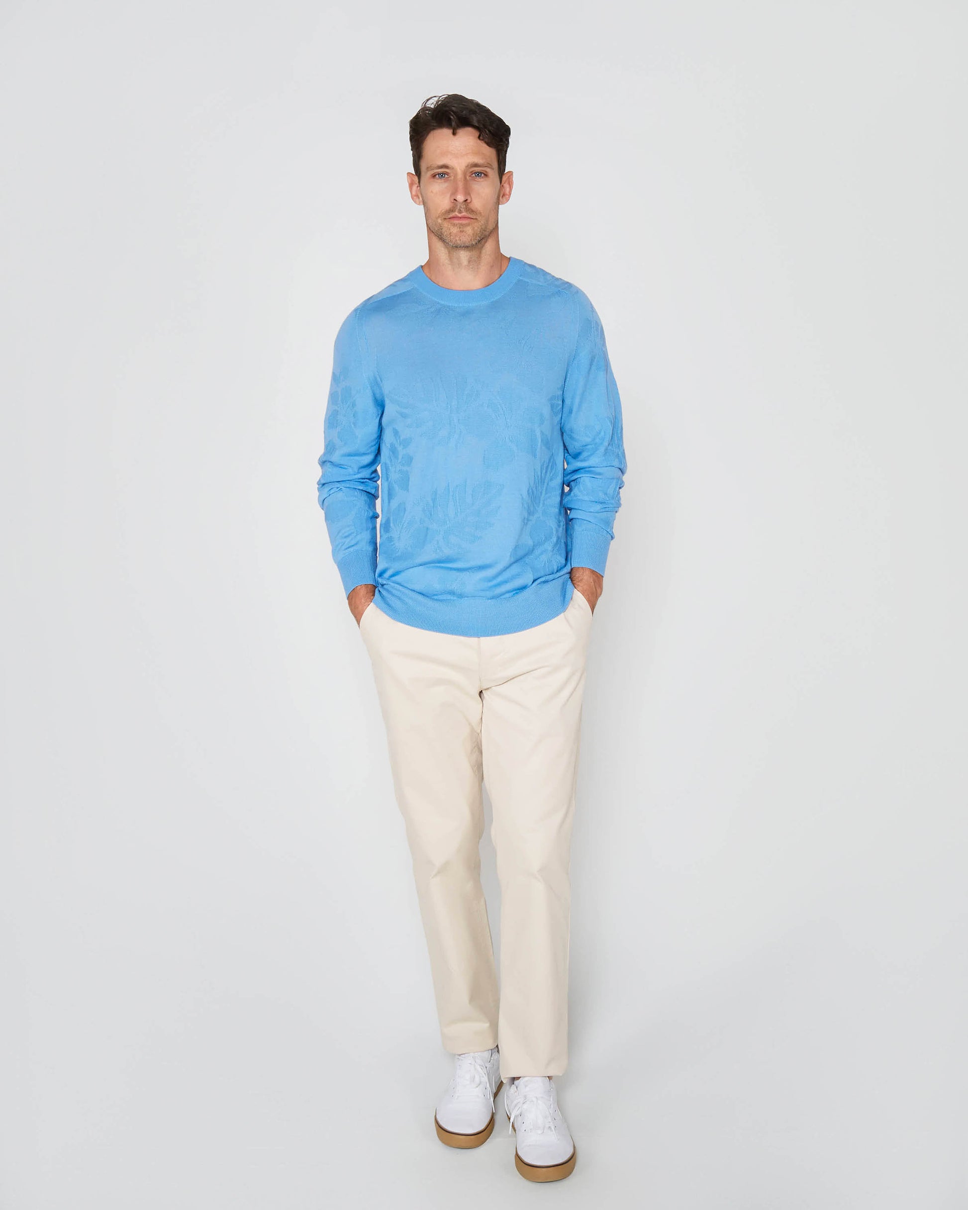Extremely soft and lightweight, the fine yarn in this sweater allows it to breathe and stretch, giving you supreme comfort. The Merino wool is also a smart fabric that knows when to keep you warm and when to chill. If that's not enough, look closely and see an intricate pattern knitted into the fabric. This Kris Crew is one special sweater.