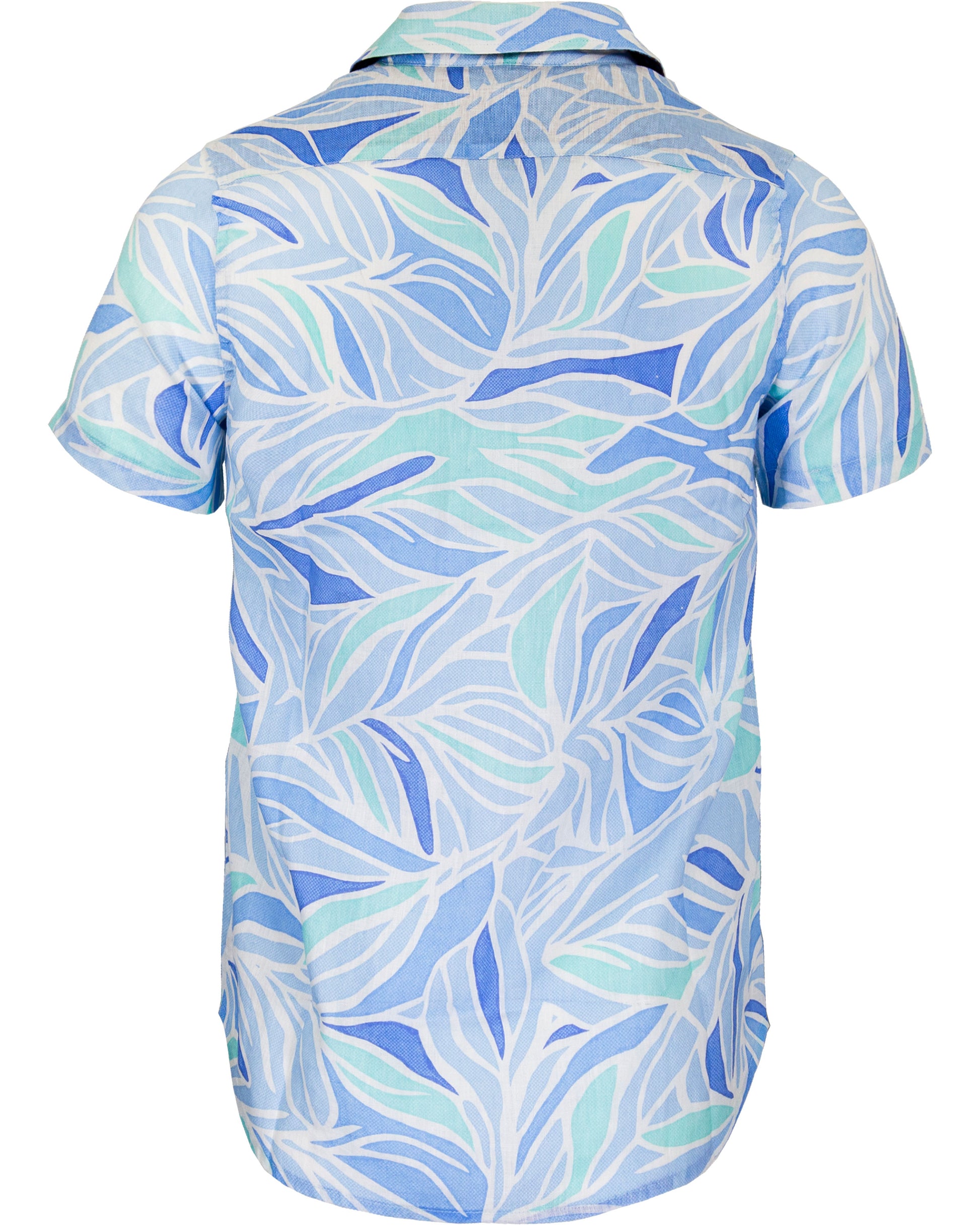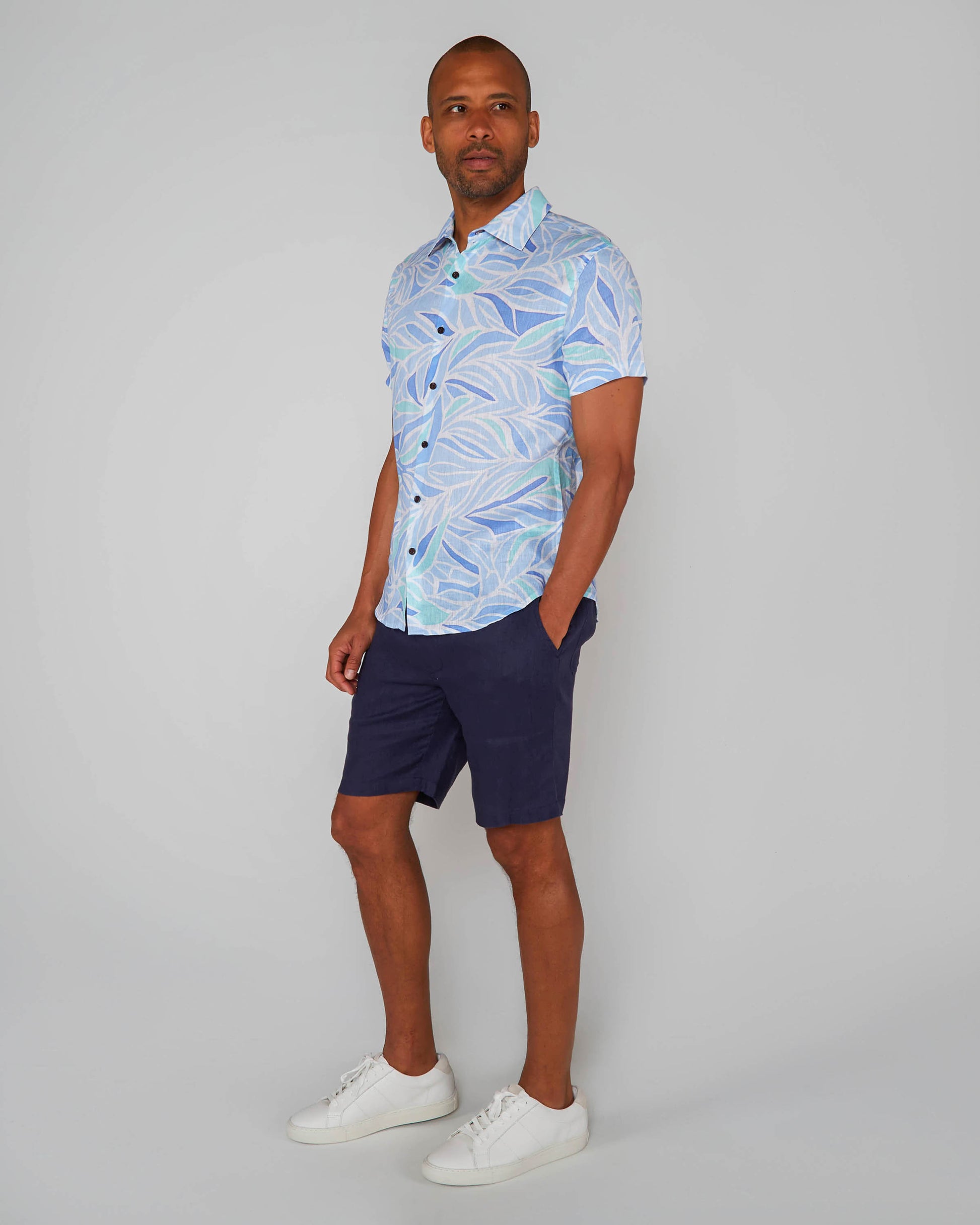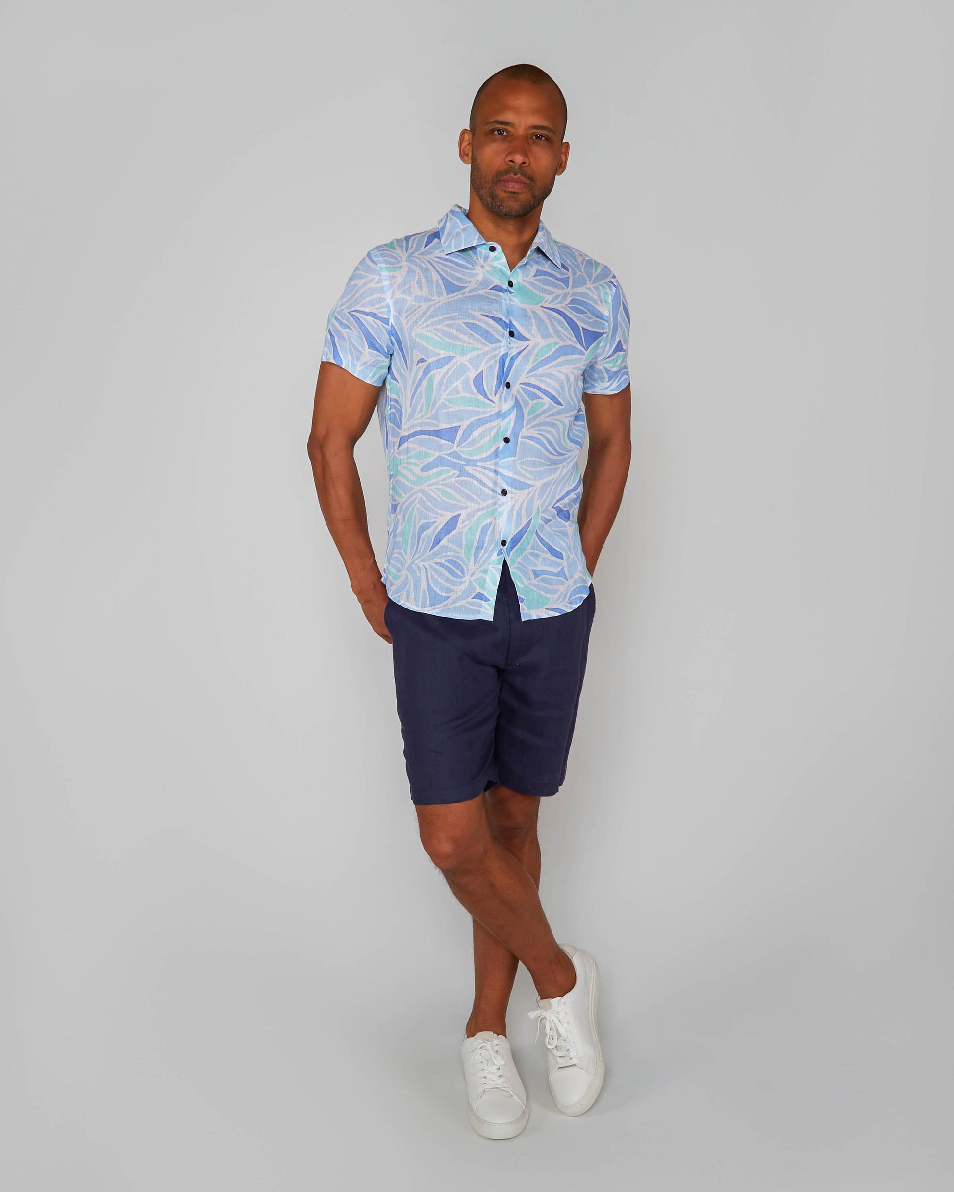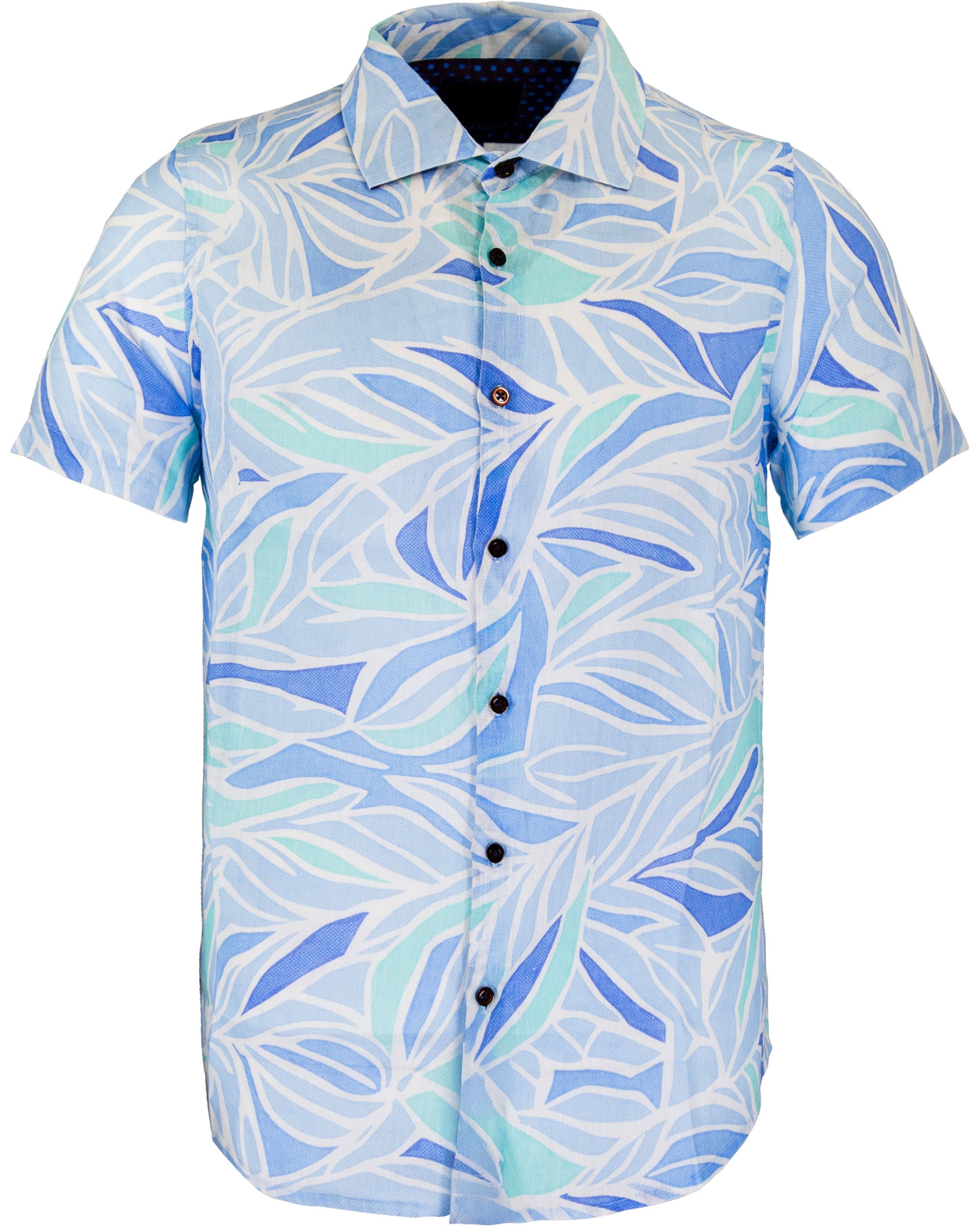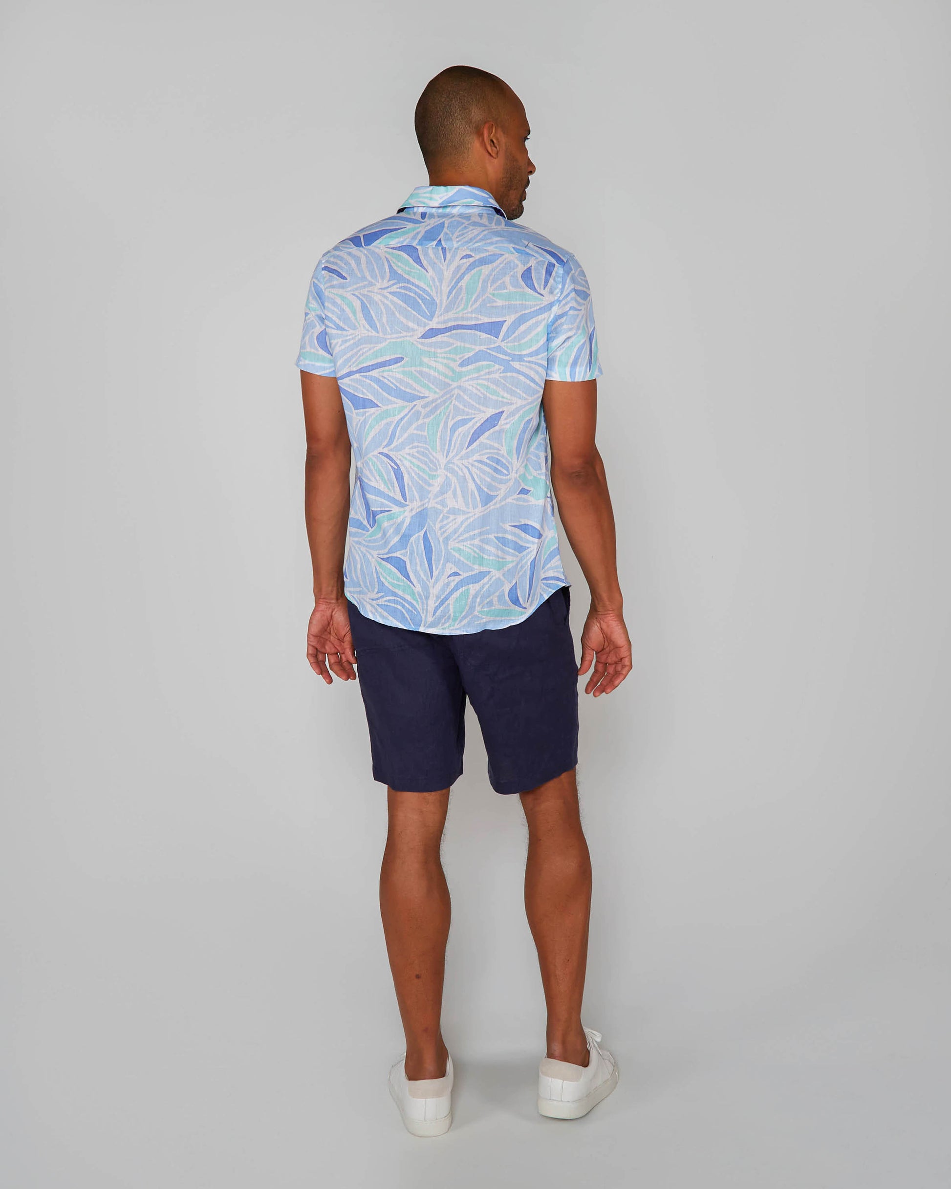 LANDON SIMPLE LEAVES LINEN SHIRT - BLUE