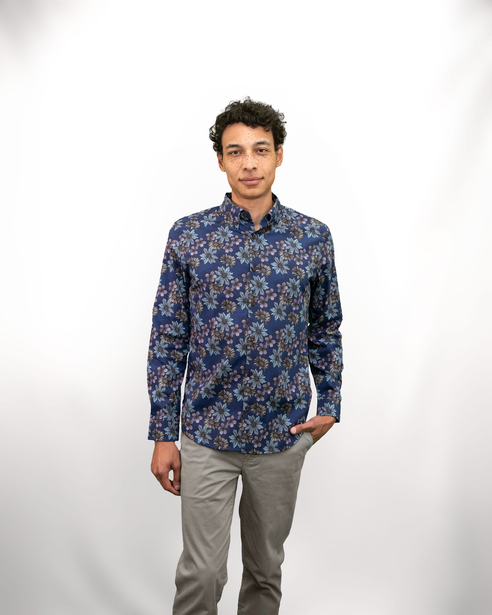 MORRIS ITALIAN FLORAL SHIRT - NAVY