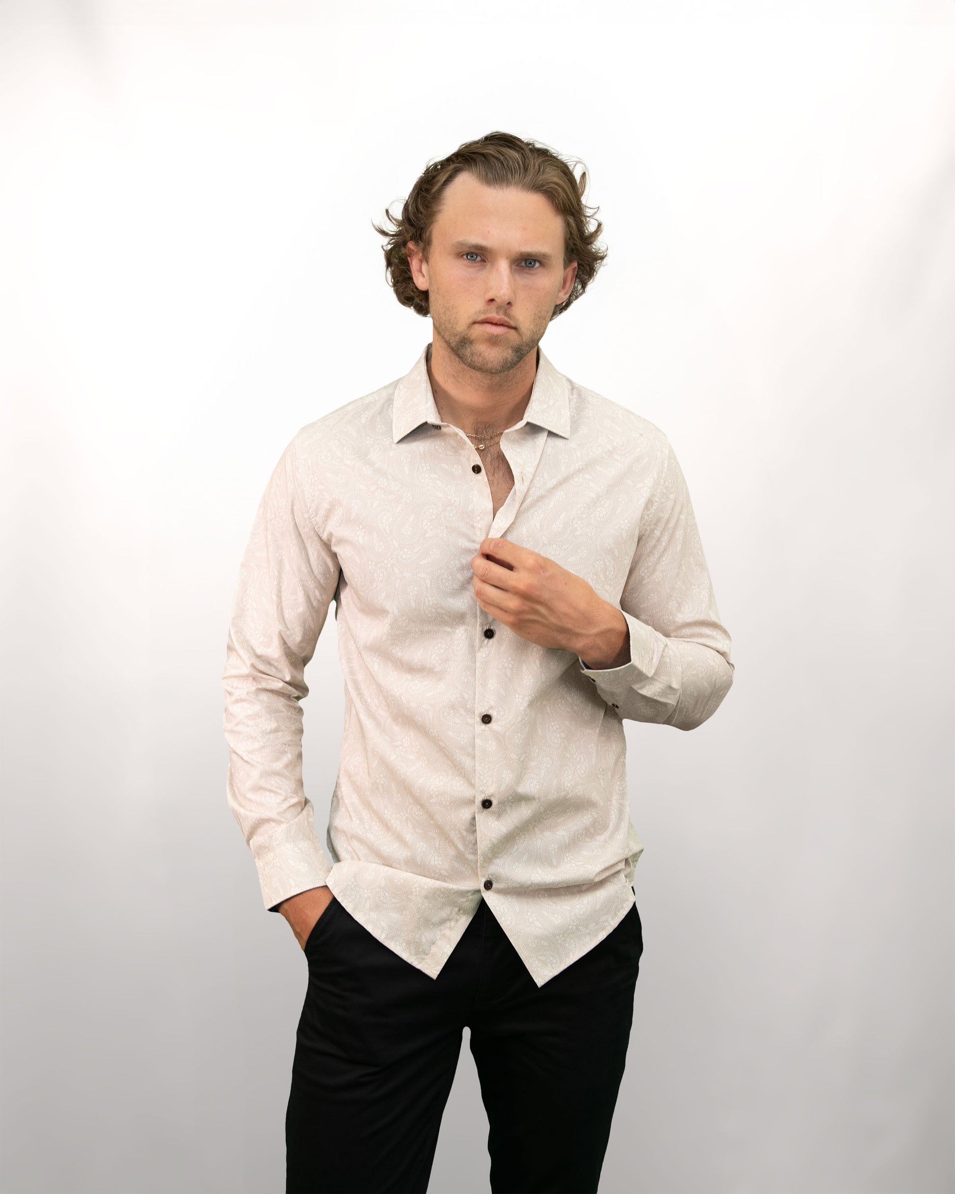 NIGEL PERUGIA PAISLEY SHIRT - PUMICE