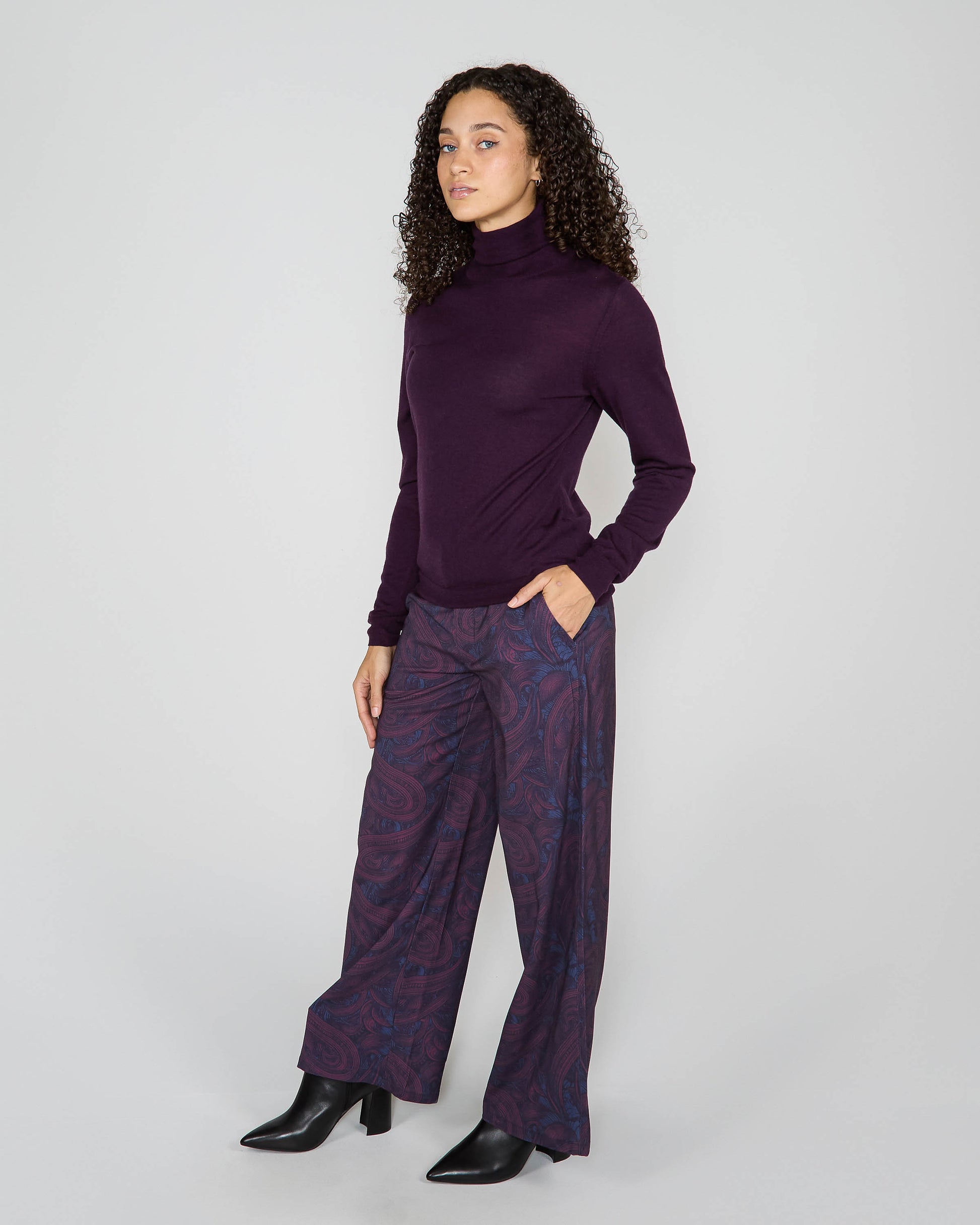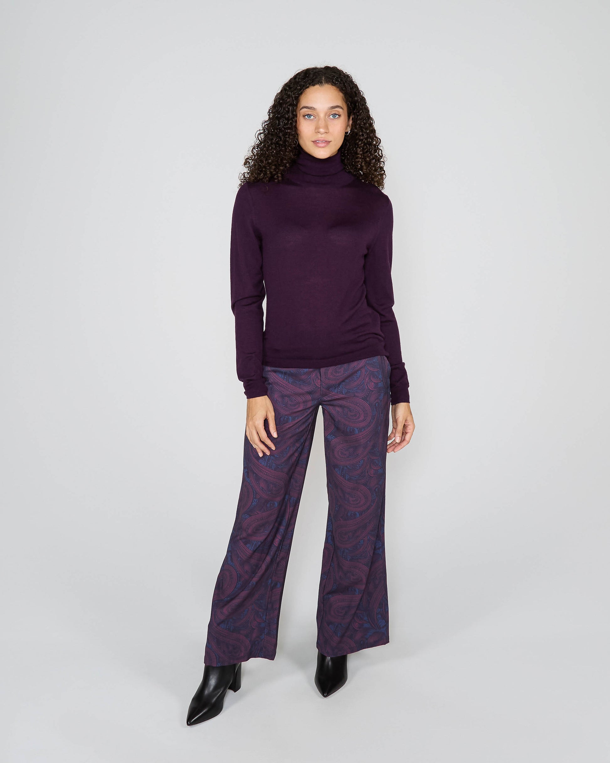 This luxe turtleneck sweater is crafted from a premium blend of merino wool, silk, and cashmere for a feel that?s as elegant as it is effortless. Merino wool provides natural breathability and temperature regulation, while silk lends a subtle sheen and cashmere brings unmatched softness. Finished with a classic fold-over turtleneck and clean lines, this piece layers seamlessly under jackets or stands alone as a polished essential.