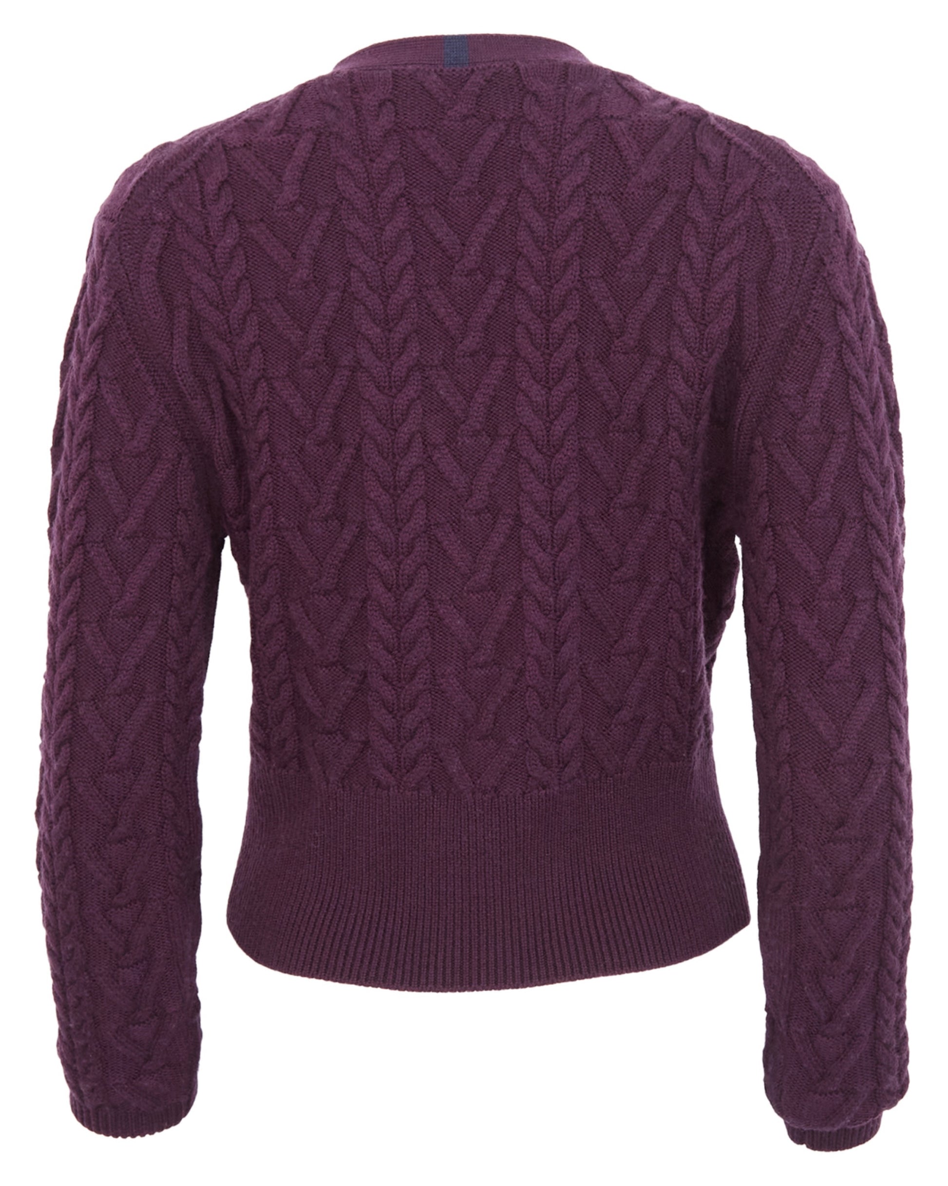 SAMANTHA TEXTURED CABLE KNIT SWEATER - PLUM