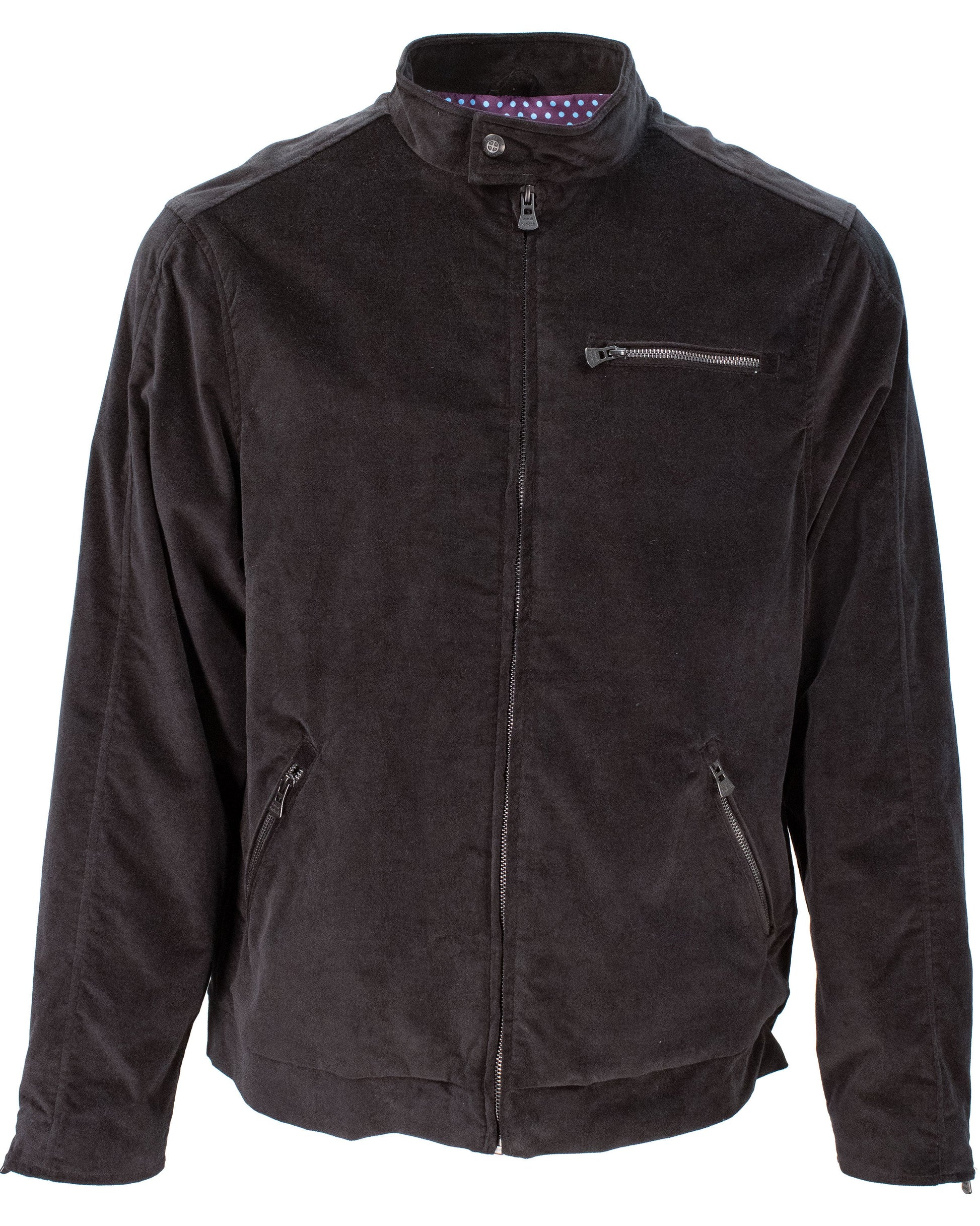 The Dean Jacket is our modern take on the classic moto silhouette, crafted in plush stretch velvet for a refined yet rebellious feel. Cut with clean lines and subtle structure, it delivers a sleek profile while maintaining effortless comfort. Finished with pewter snaps and our signature polkadot lining, it's the perfect statement layer for nights out or elevated everyday style.
