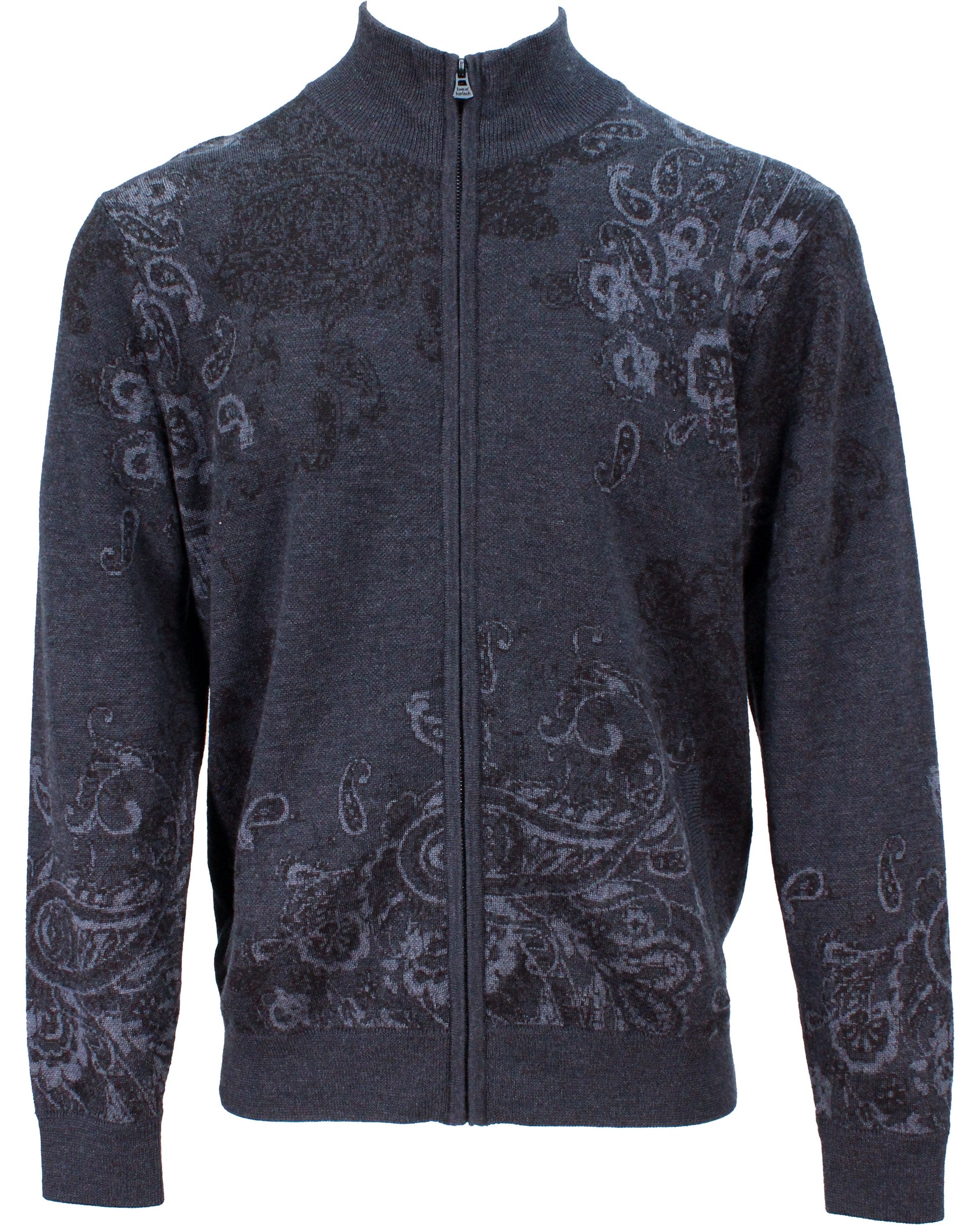 FREDERICK PAISLEY FULL-ZIP CARDIGAN - CHARCOAL