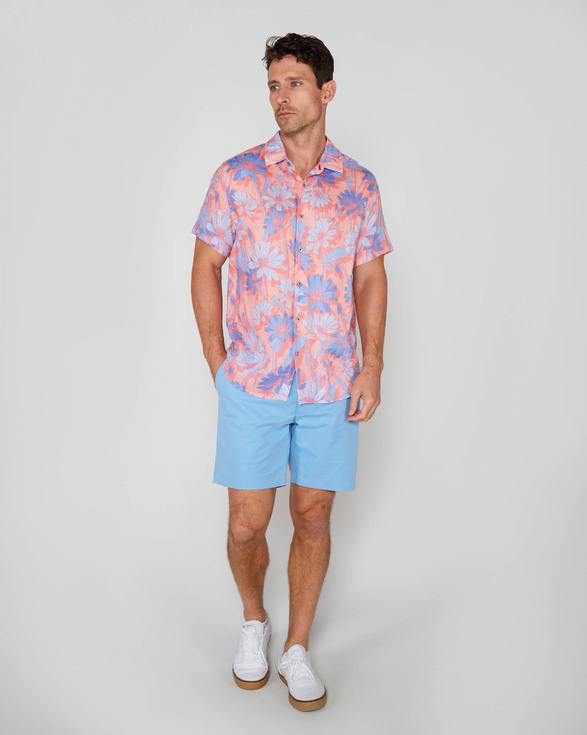 This short sleeve button-down shirt, crafted from 100% premium linen, offers a perfect combination of relaxed elegance and unique style. The lightweight, breathable fabric ensures comfort in warm weather, while the subtle texture of the linen provides a laid-back yet refined look. Ideal for casual outings or beachside strolls, this shirt is both stylish and versatile, making it a standout piece in any wardrobe.