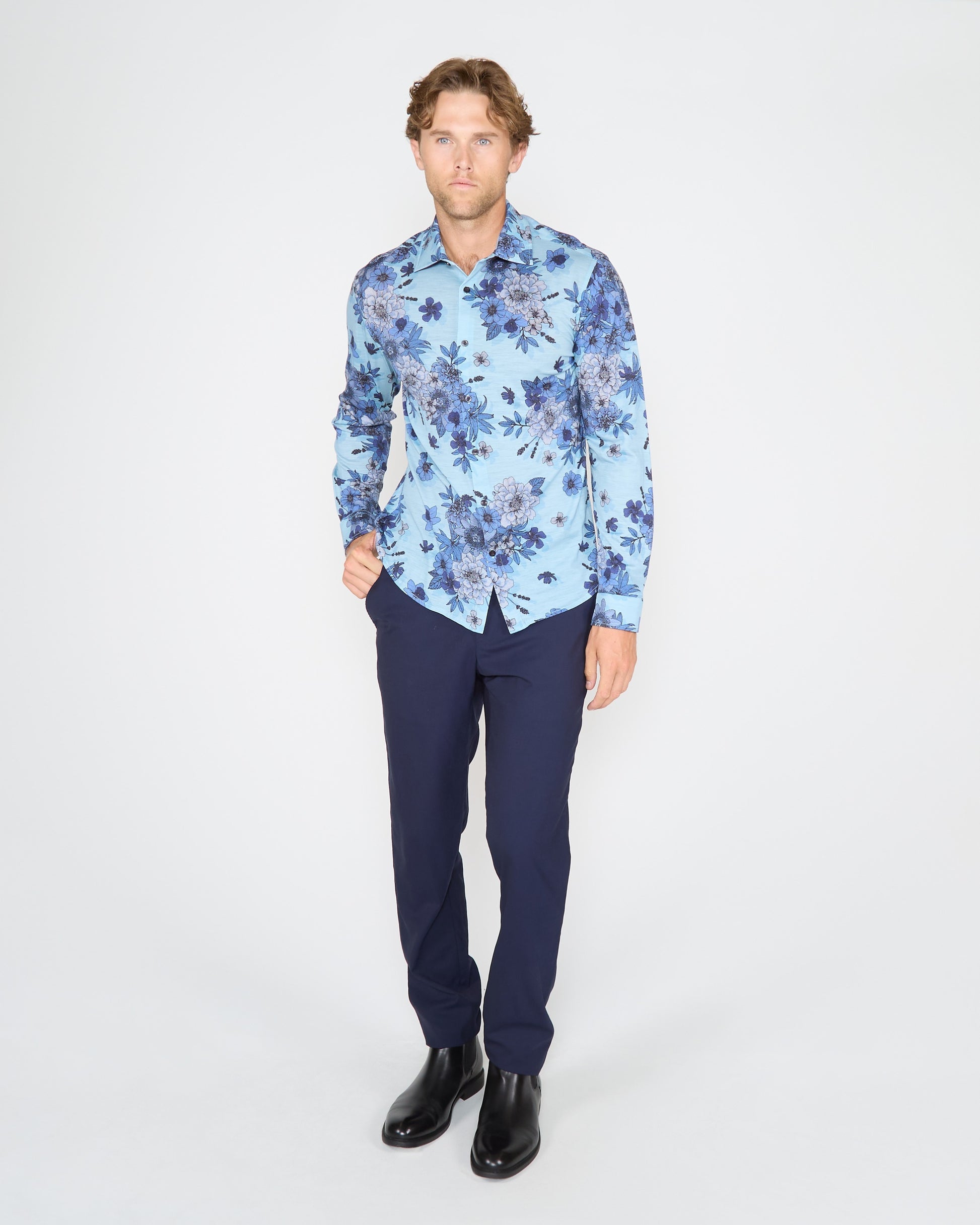 SHERLOCK VALENCIA FLORAL TAILORED MERINO SHIRT - TEAL