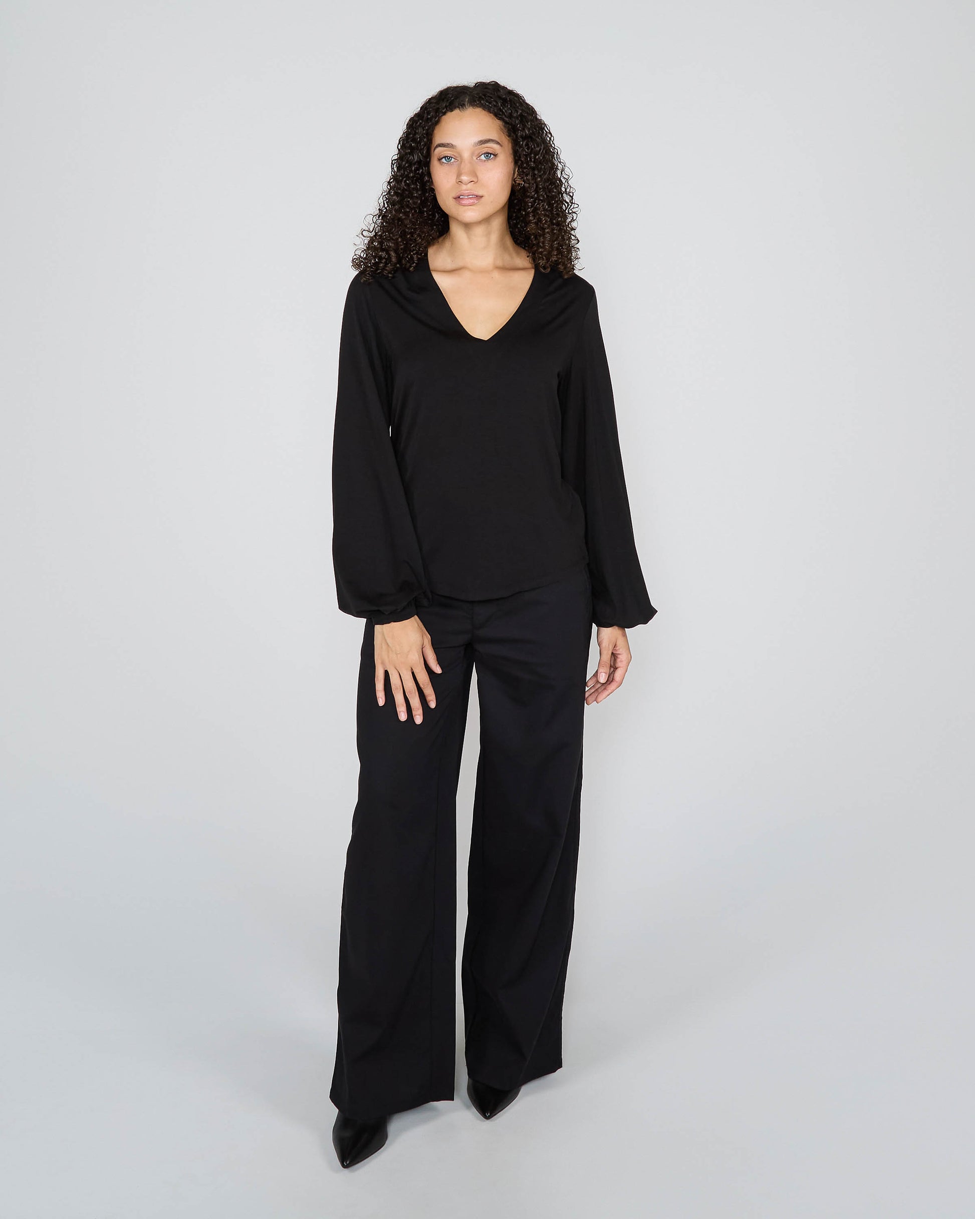 VAL LONG SLEEVE V-NECK SHIRT - BLACK