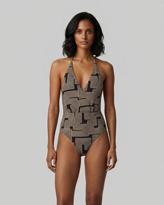 XENA INTER TWINE BLACK WOMENS HALTER ONE-PIECE SWIMSUIT