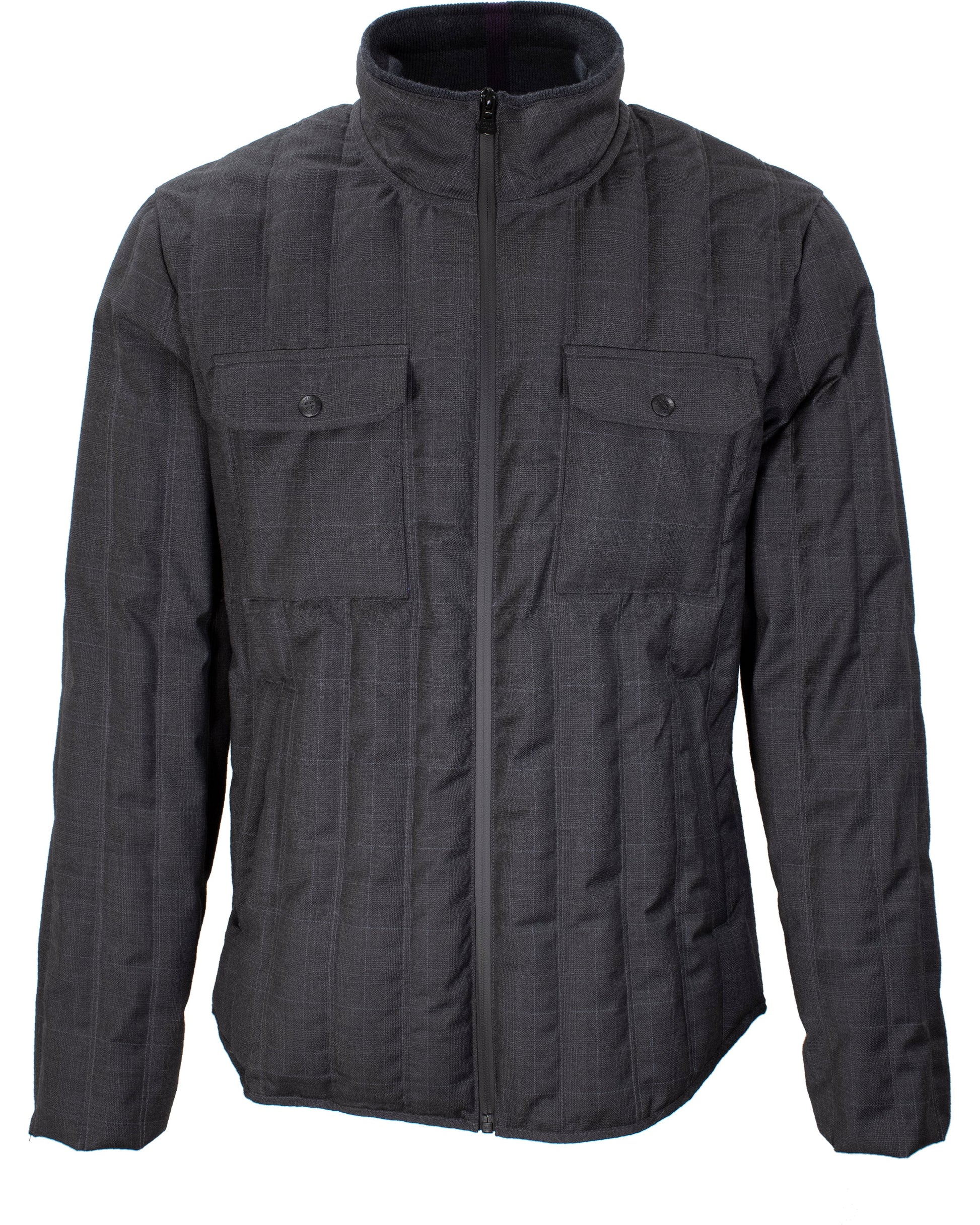 The Claudio Jacket brings together the sophistication of merino plaid wool with the warmth of premium duck down, creating a refined cold-weather layer with a modern tailored sensibility. The surface features an understated plaid pattern woven in merino wool, giving the jacket rich depth and texture while maintaining a clean, streamlined silhouette.
