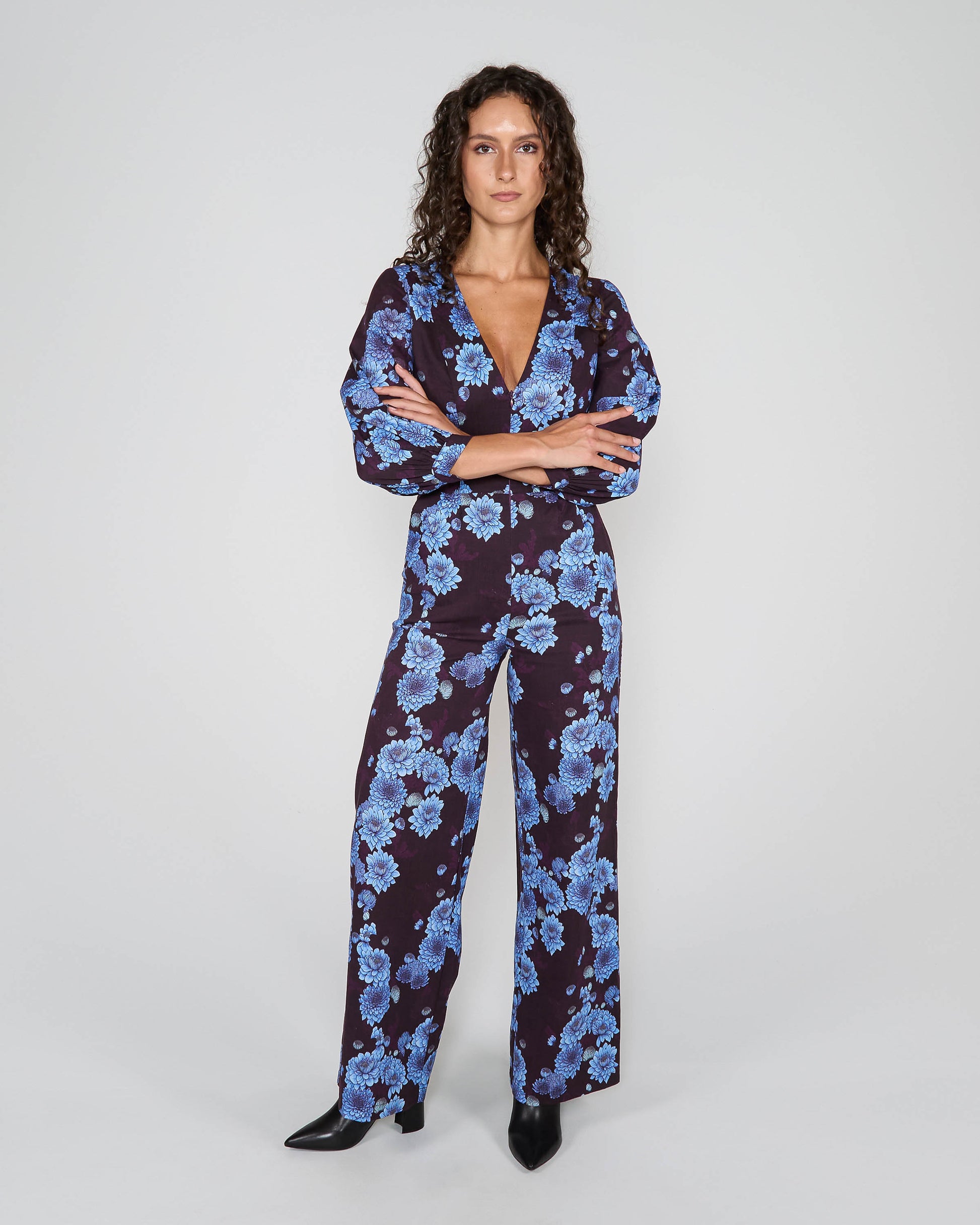 JILL SERIOUS FLORAL JUMPSUIT - PLUM