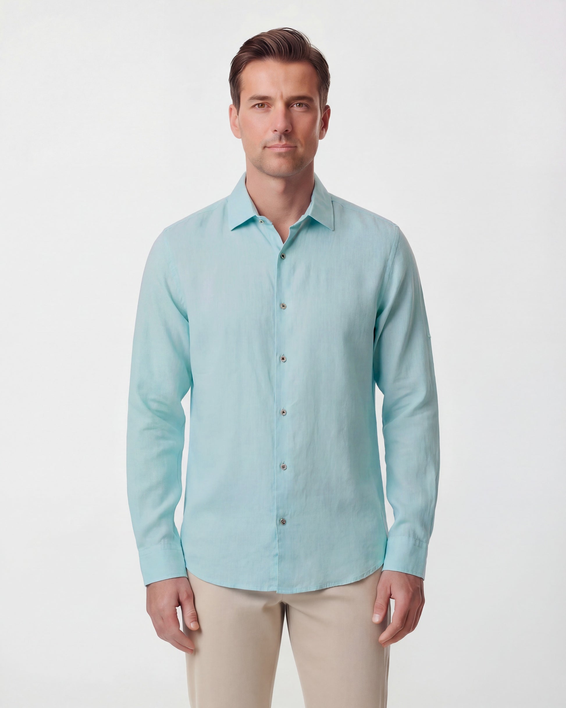 This long sleeve button-down shirt, made in Italy from 100% premium linen, exudes timeless elegance and exceptional craftsmanship. The lightweight, breathable linen fabric is perfect for keeping you cool and comfortable, even on warmer days. Its natural texture offers a relaxed yet refined look, while the durable fibers ensure a long-lasting garment. With a classic button-down design and a tailored fit, this shirt provides a sophisticated silhouette that's versatile enough for both casual and smart-casual occasions. Whether layered or worn on its own, this Italian-made linen shirt is a luxurious addition to any wardrobe.