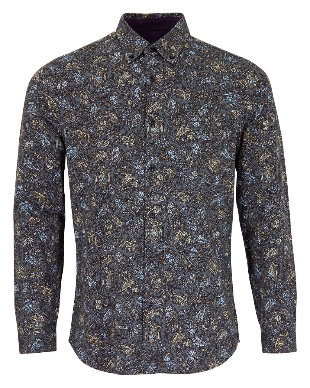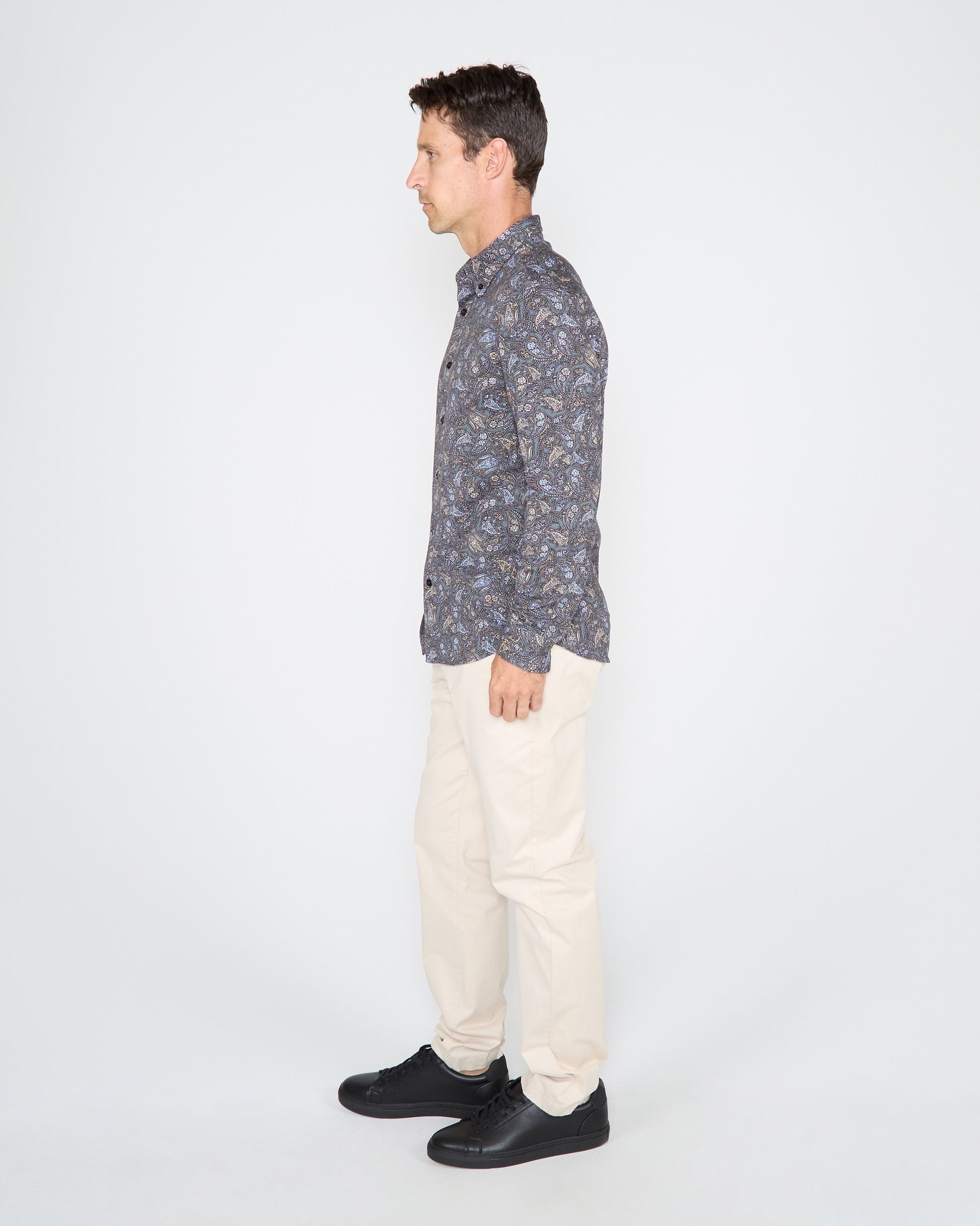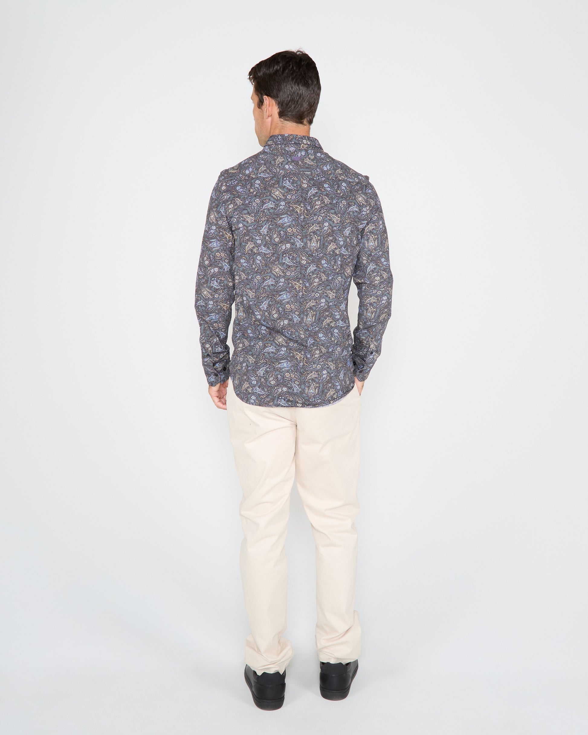 SAWYER MADRID PAISLEY FLORAL KNIT SHIRT - SMOKE