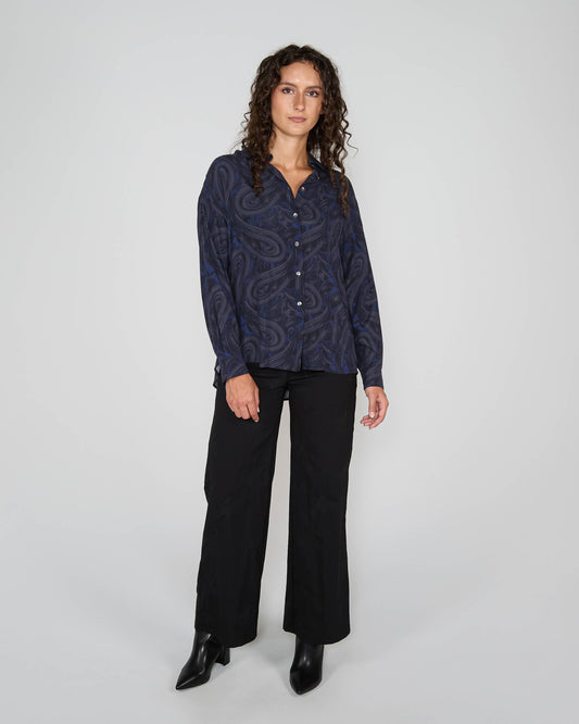 SOPHIE SILK OVERSIZED SHIRT - SOFTBLOOM NAVY