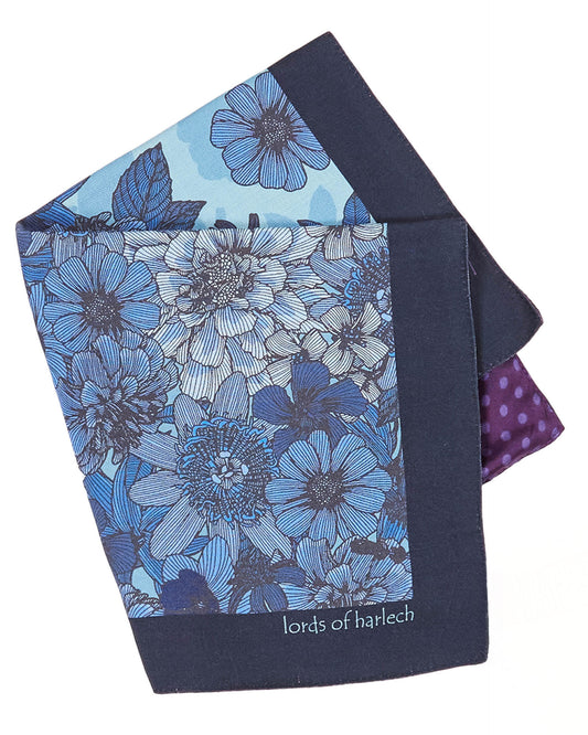 HUDSON CATALAN FLORAL MERINO HANDKERCHIEF POCKET SQUARE - NAVY