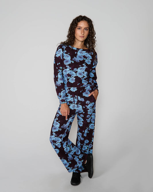 CLARA SERIOUS FLORAL OVERSIZED CREWNECK SWEATSHIRT - PLUM