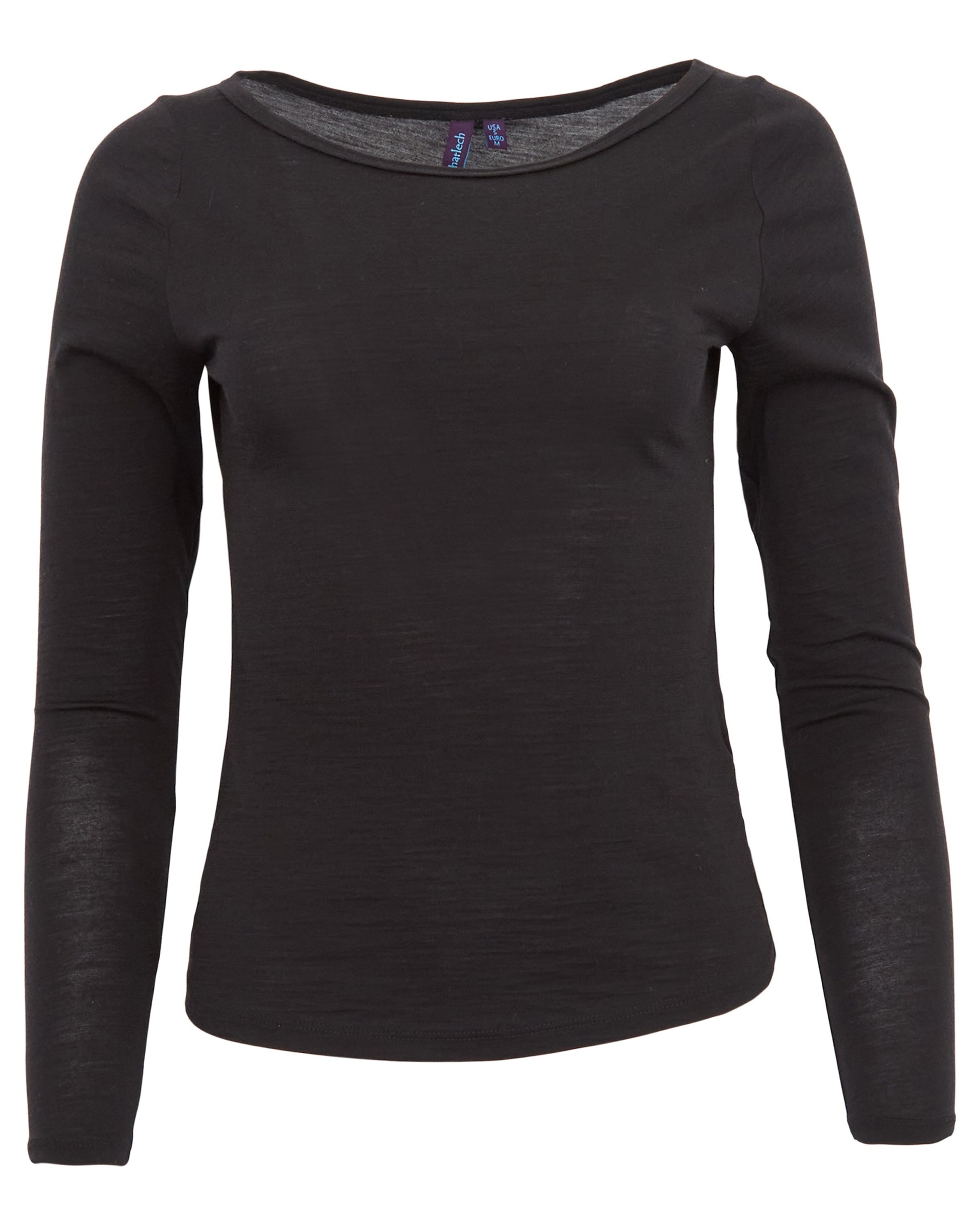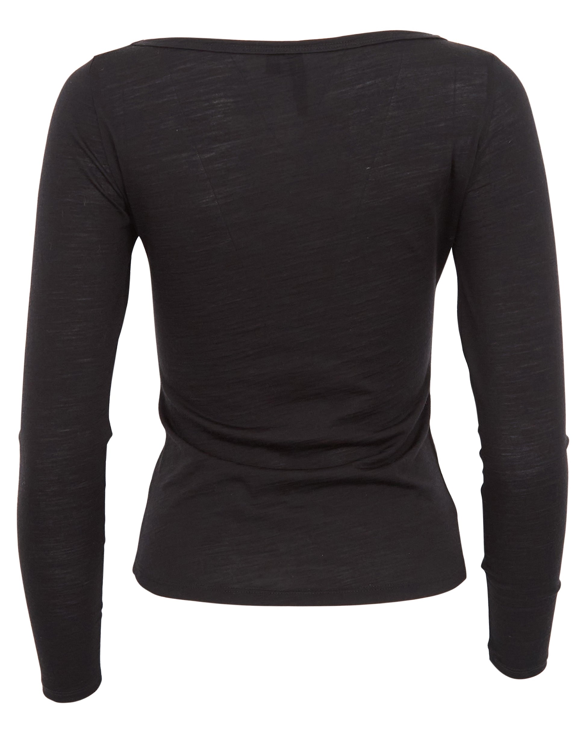 CARLY MERINO LONG SLEEVE CREWNECK SHIRT - BLACK