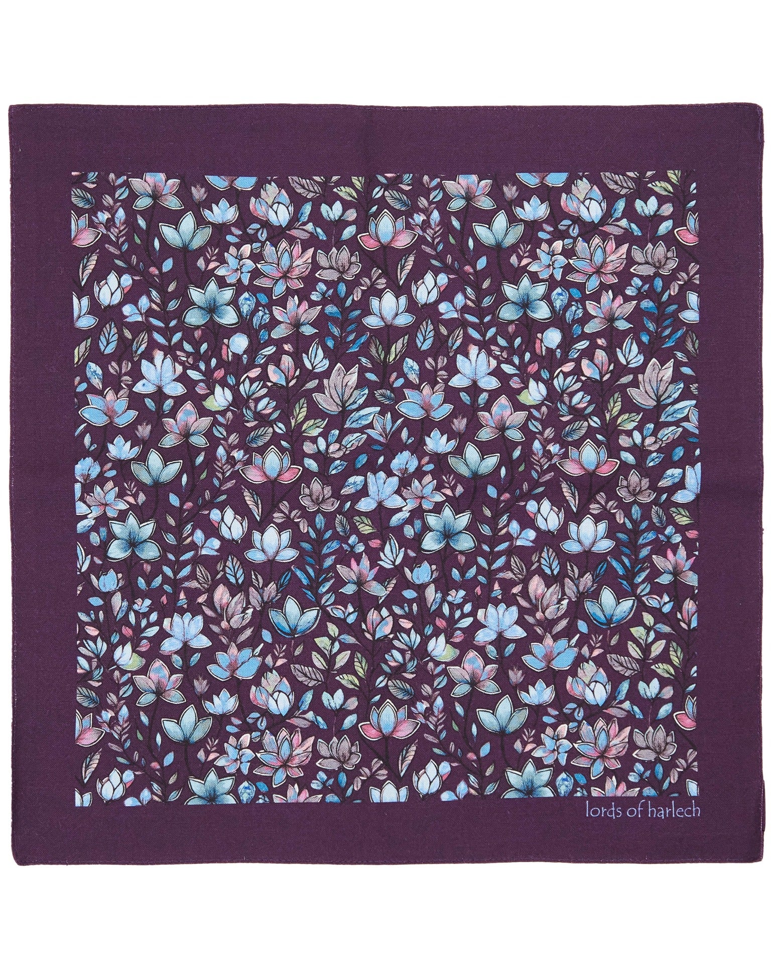HUDSON MYSTIC FLORAL MERINO HANDKERCHIEF POCKET SQUARE - PLUM