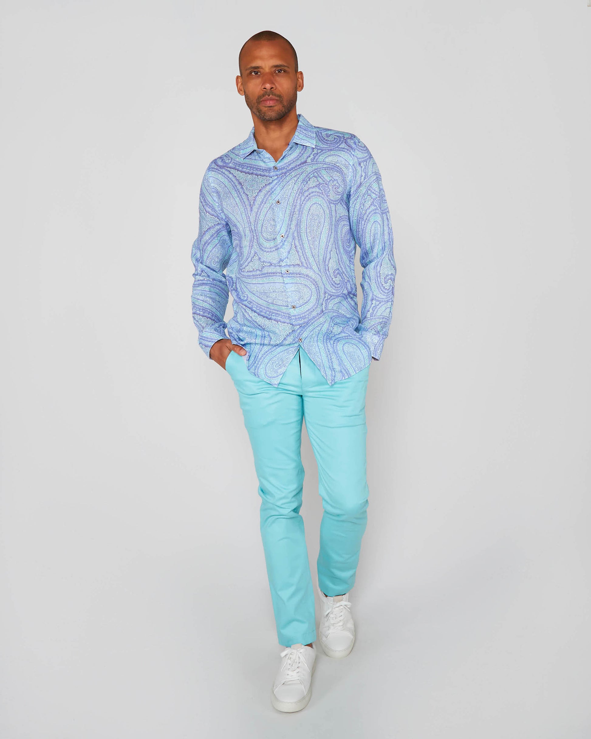 Soft and stretchy are two words not typically associated with chinos. Well, you don't know Jack. The Jack chino is made of washed, stretched, and peached sateen cotton. All in an effort to make the most comfortable chino possible. Add a printed interior under the cuff (for flair) and these are sure to be the softest, stretchiest, and most stylish pants you'll ever own.