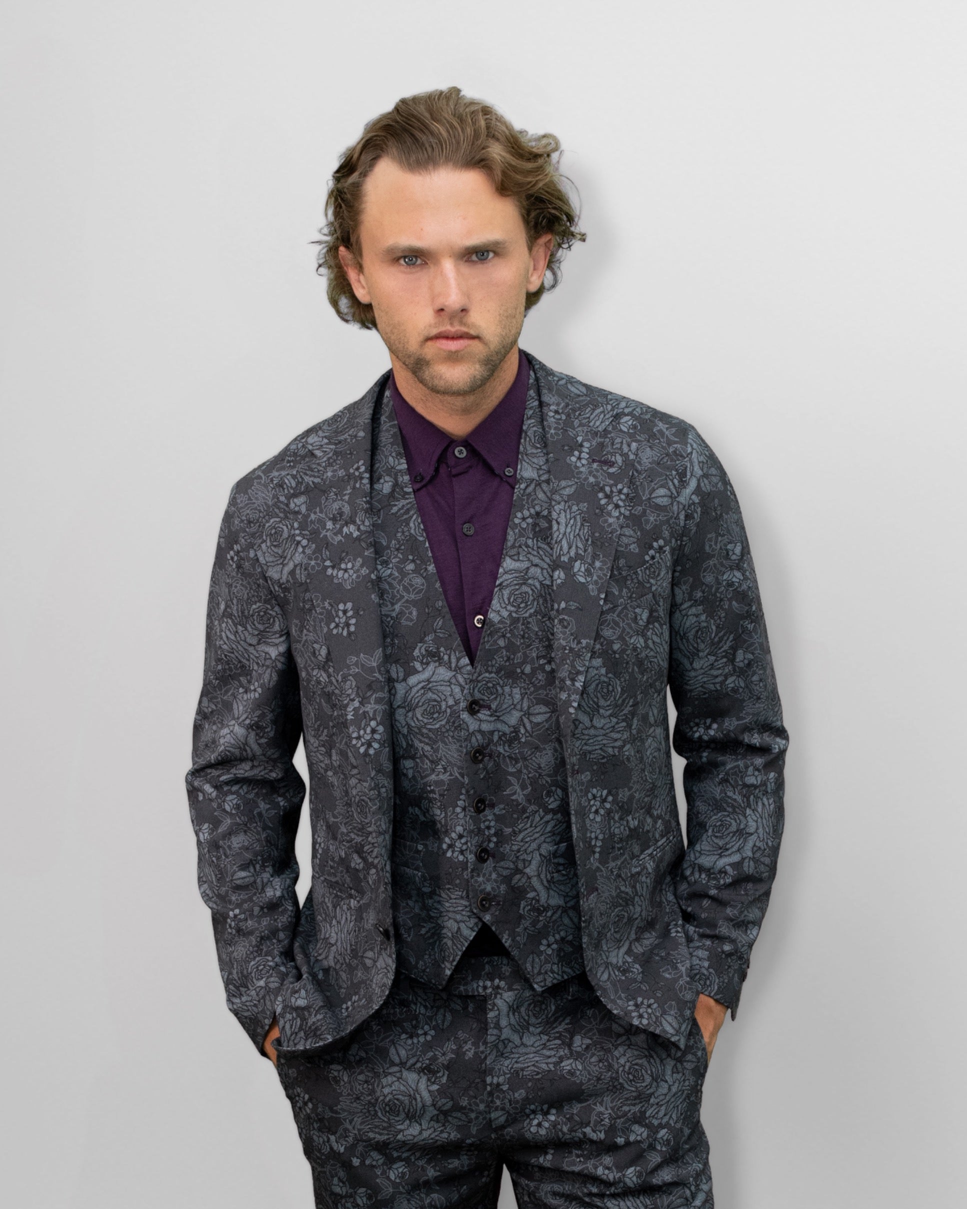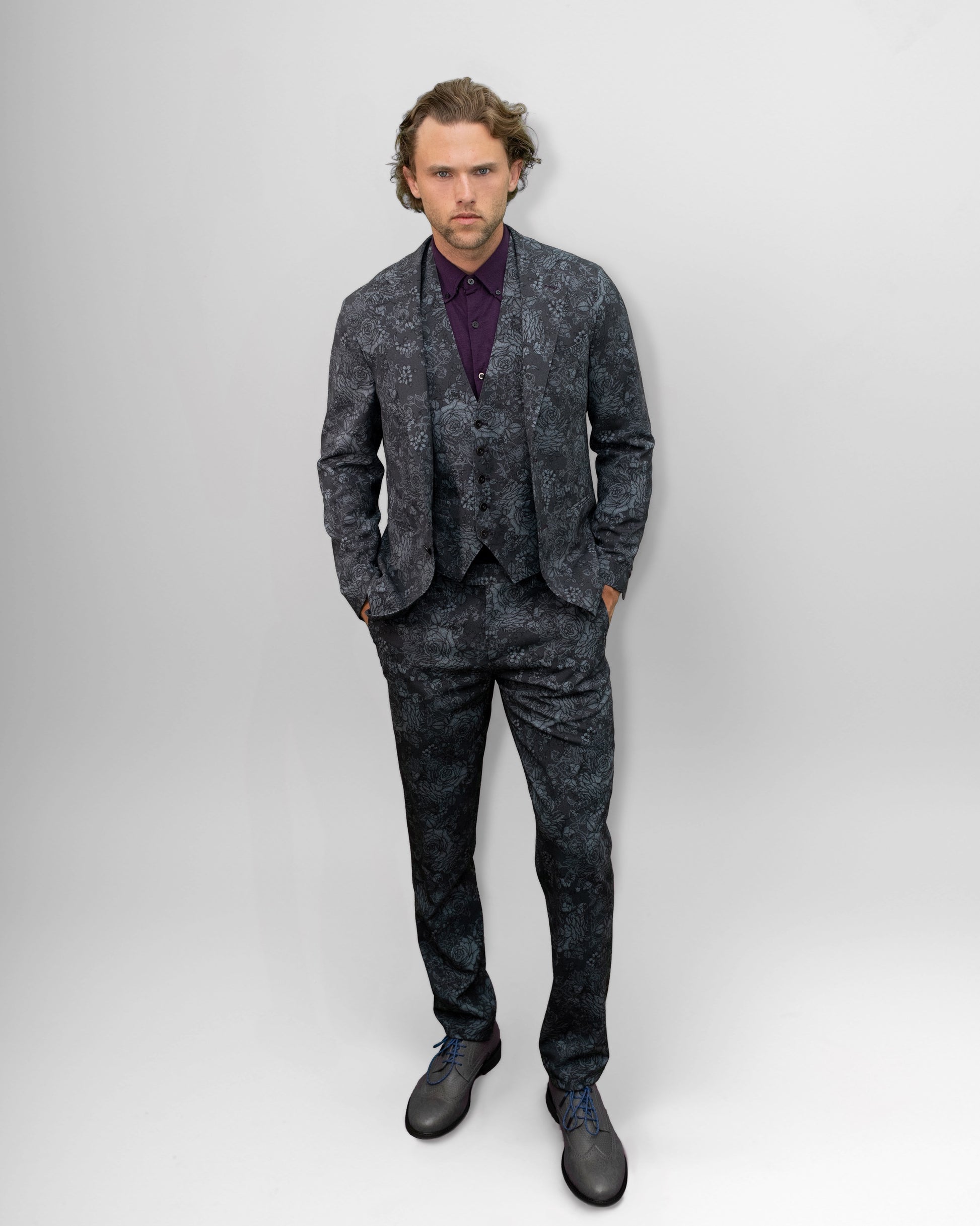JUDD FULLY LINED ROMA FLORAL TAILORED WOOL BLAZER - CHARCOAL