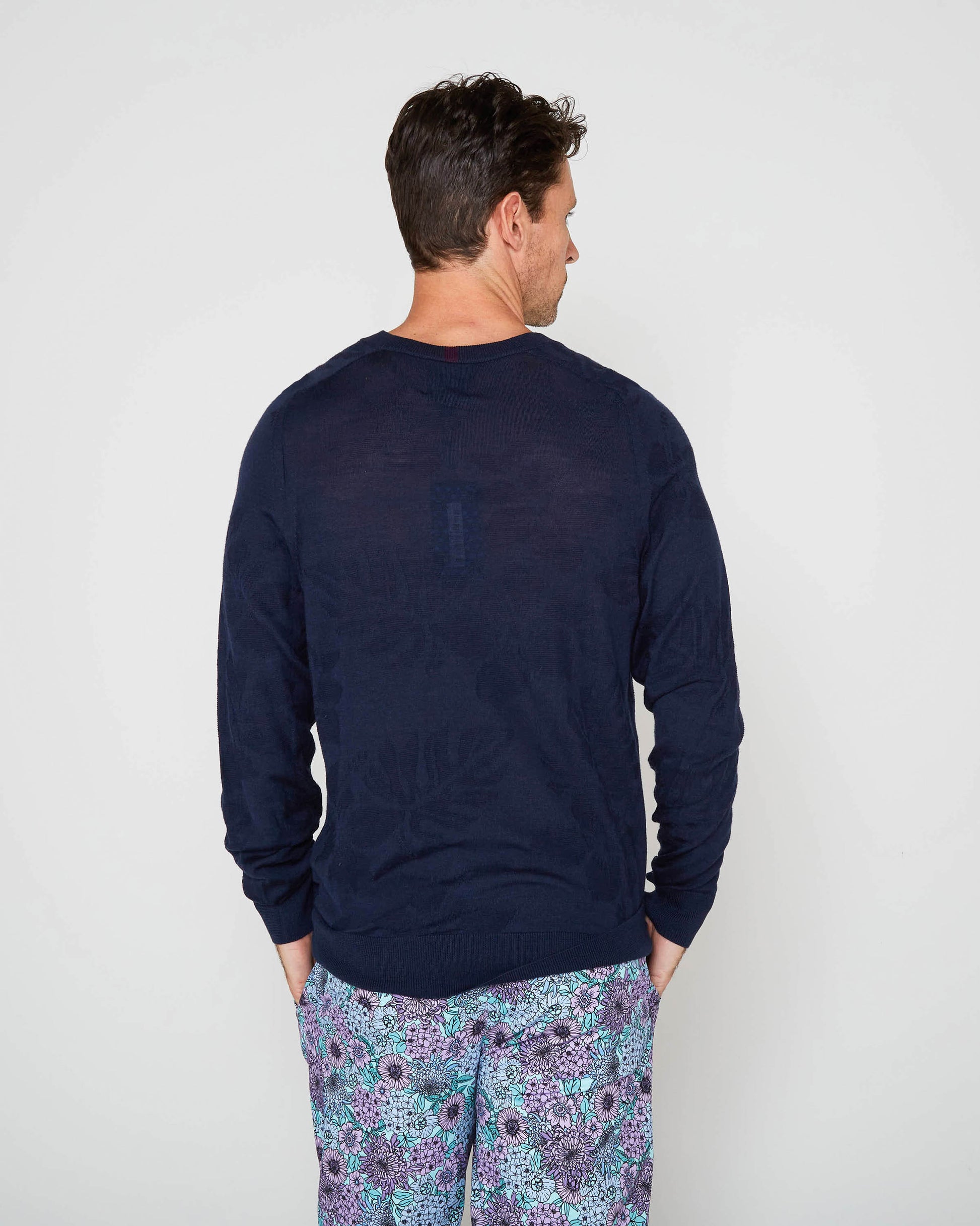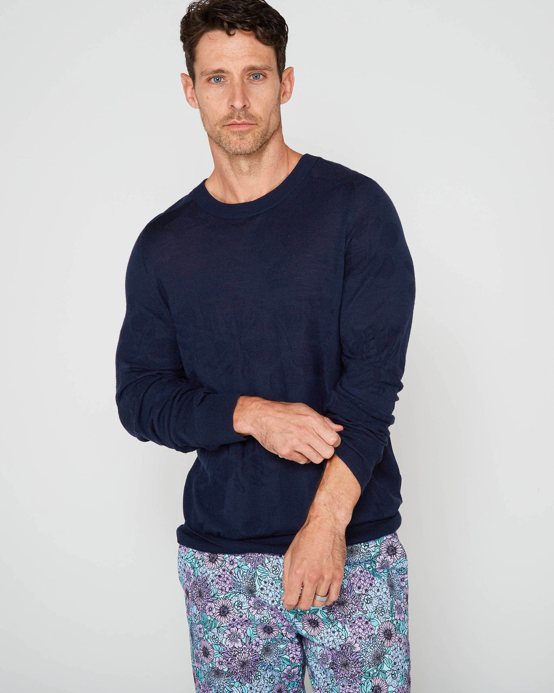 Extremely soft and lightweight, the fine yarn in this sweater allows it to breathe and stretch, giving you supreme comfort. The Merino wool is also a smart fabric that knows when to keep you warm and when to chill. If that's not enough, look closely and see an intricate pattern knitted into the fabric. This Kris Crew is one special sweater.