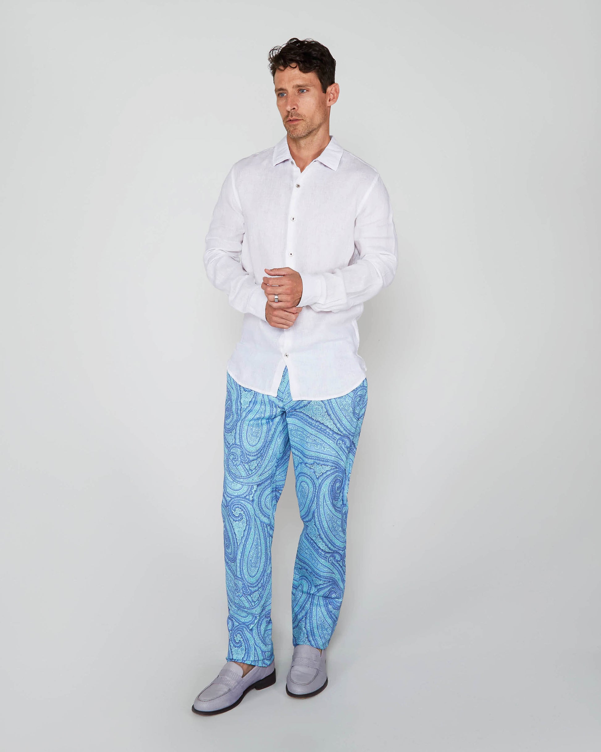 This long sleeve button-down shirt, made in Italy from 100% premium linen, exudes timeless elegance and exceptional craftsmanship. The lightweight, breathable linen fabric is perfect for keeping you cool and comfortable, even on warmer days. Its natural texture offers a relaxed yet refined look, while the durable fibers ensure a long-lasting garment. With a classic button-down design and a tailored fit, this shirt provides a sophisticated silhouette that's versatile enough for both casual and smart-casual occasions. Whether layered or worn on its own, this Italian-made linen shirt is a luxurious addition to any wardrobe.