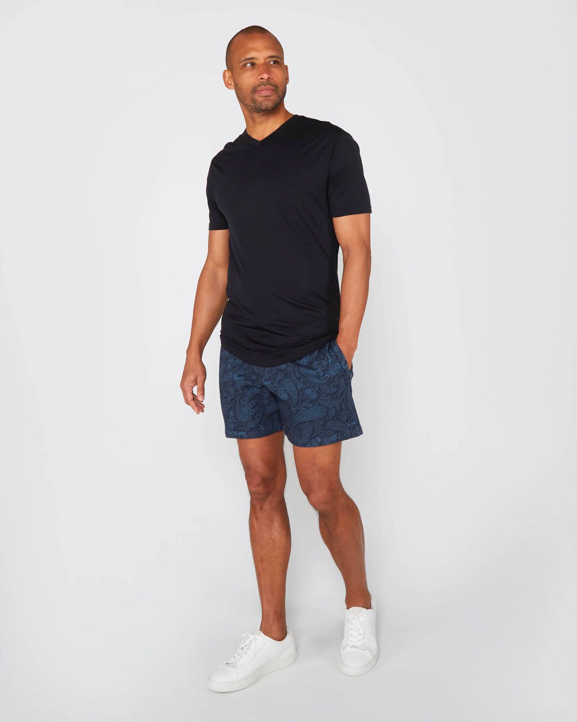 SILUS PAISLEY ROMANCE INTERLOCK SHORTS - NAVY
