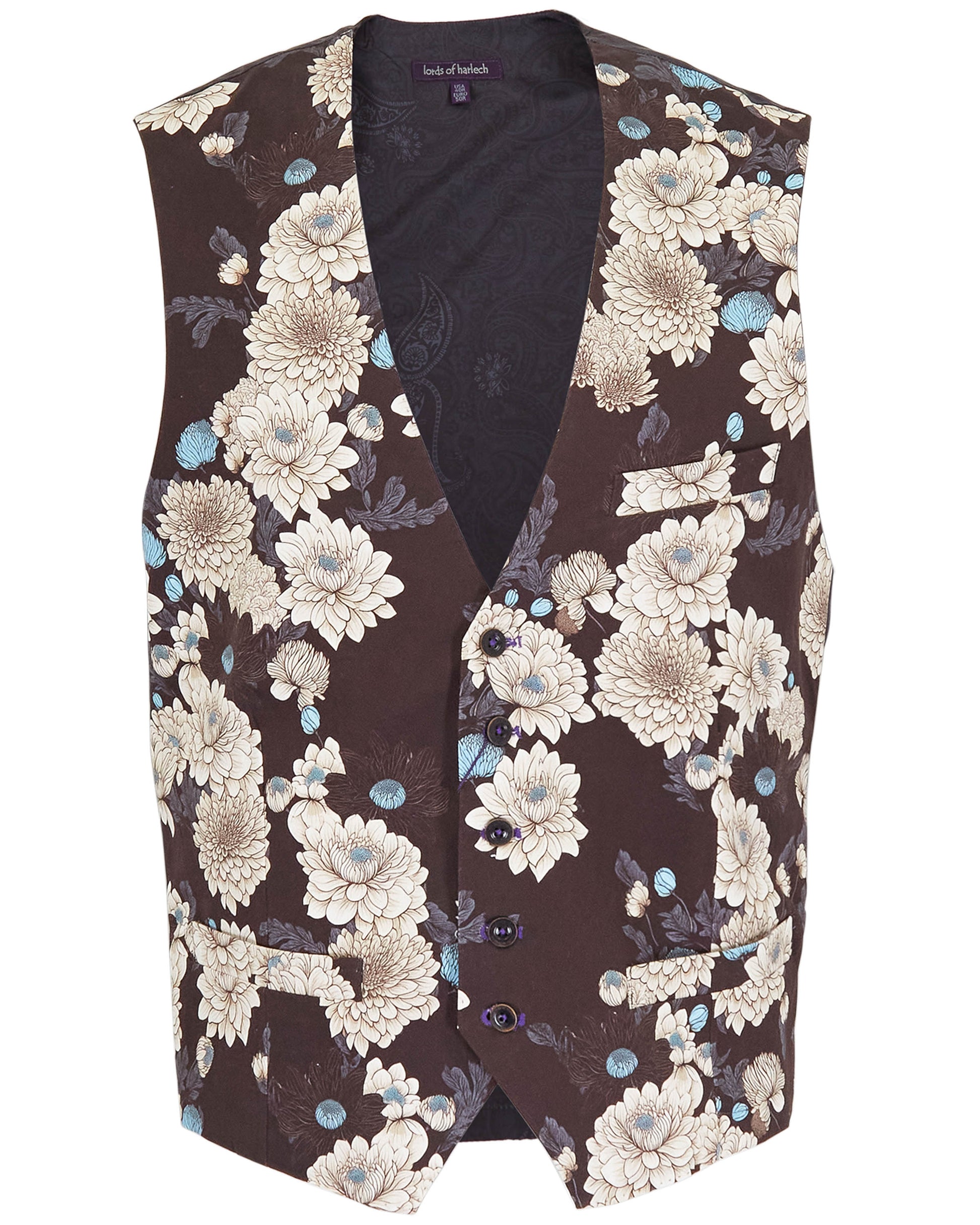 WILBUR SERIOUS FLORAL WAISTCOAT VEST - BLACK