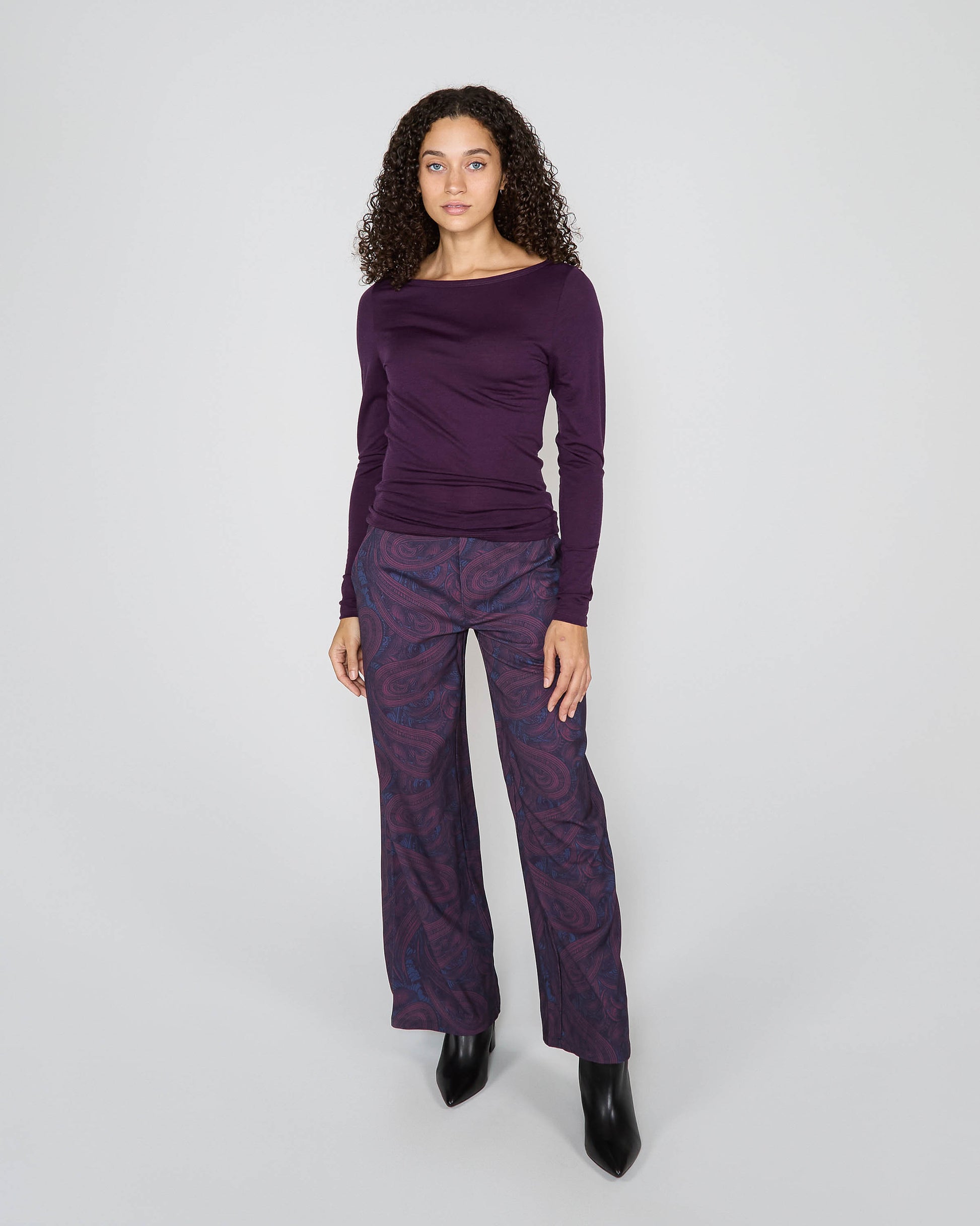 CARLY MERINO LONG SLEEVE CREWNECK SHIRT - PLUM
