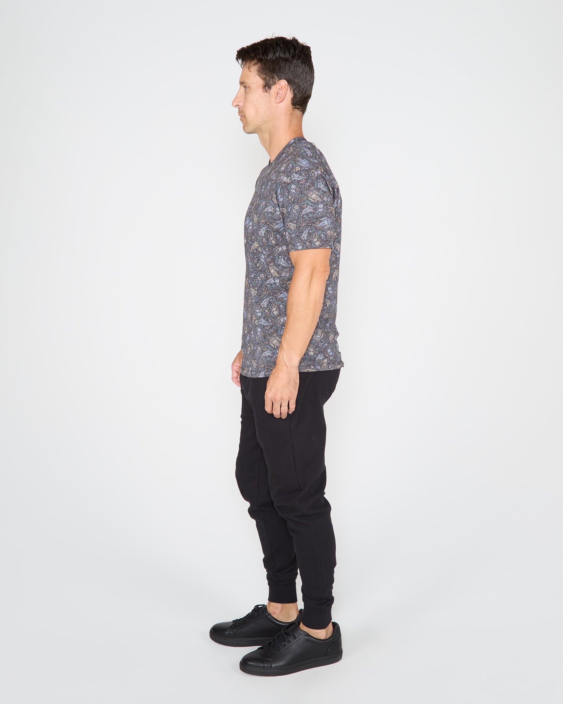MAZE MADRID PAISLEY V-NECK TEE - BLACK