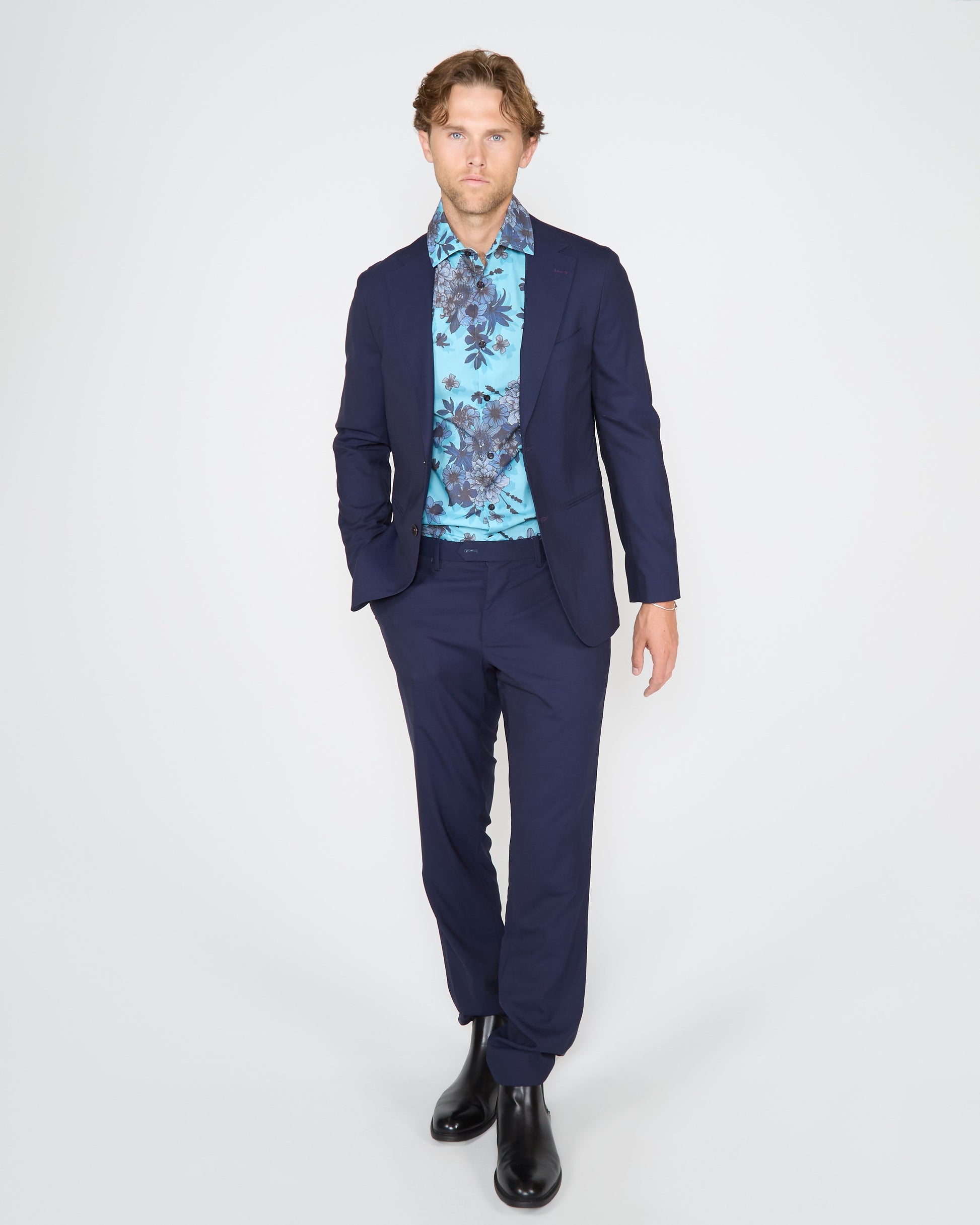Expertly crafted from luxury 100% tropical wool, these tailored flat front pants provide exceptional comfort and style. Featuring an adjustable constructed interior curtain waistband for a perfect fit, plus convenient front and rear pockets and signature UOMO polkadot pocketing. Effortlessly chic with a classic touch.