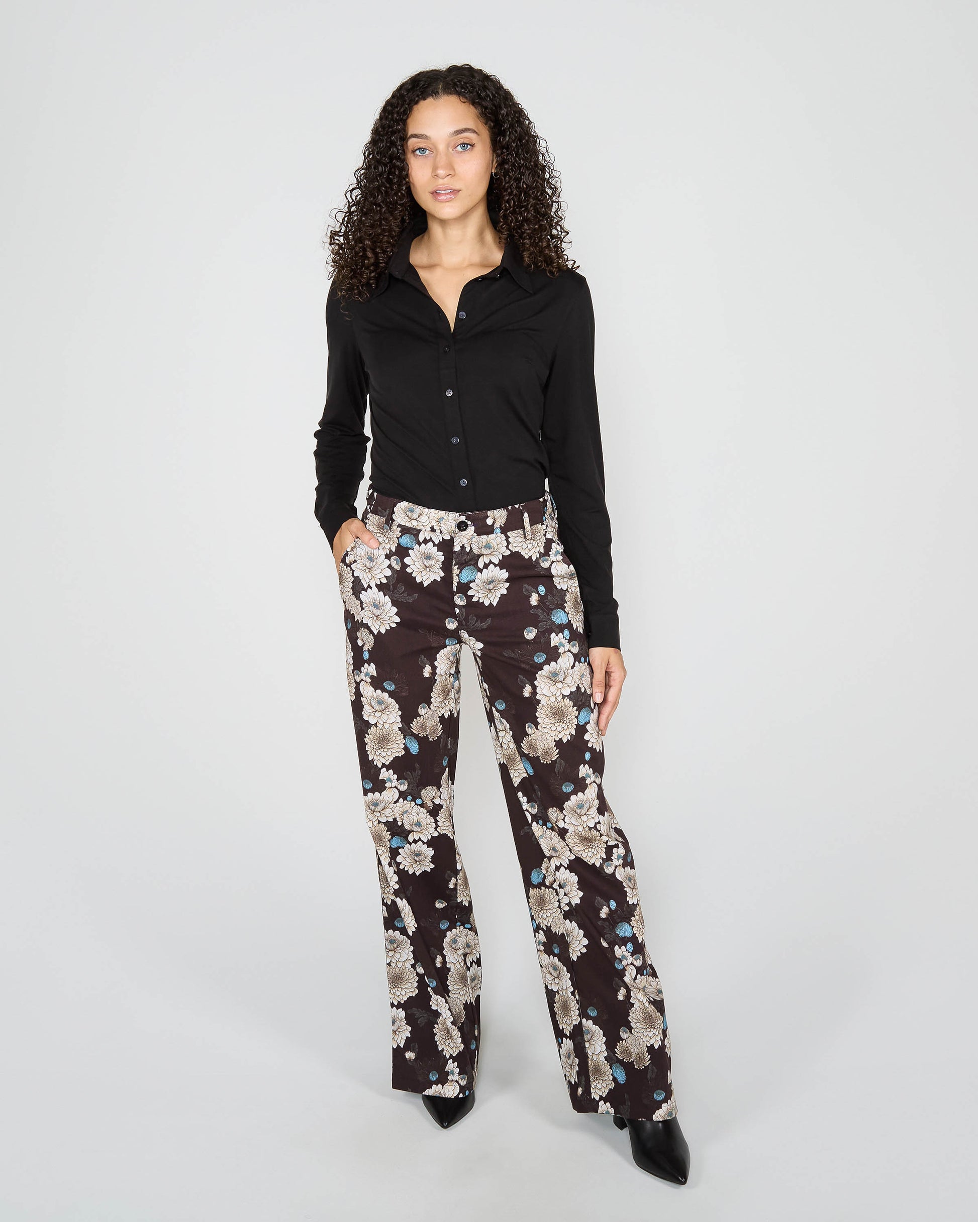 PHILLIS SERIOUS FLORAL TAILORED PANT - BLACK