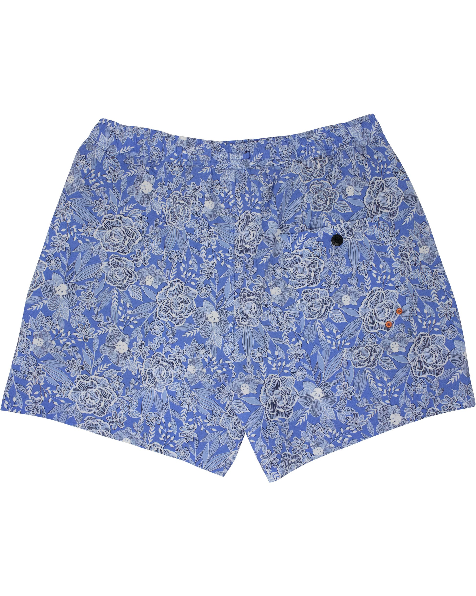 QUACK CUTOUT FLORAL SWIM SHORT - BLUE