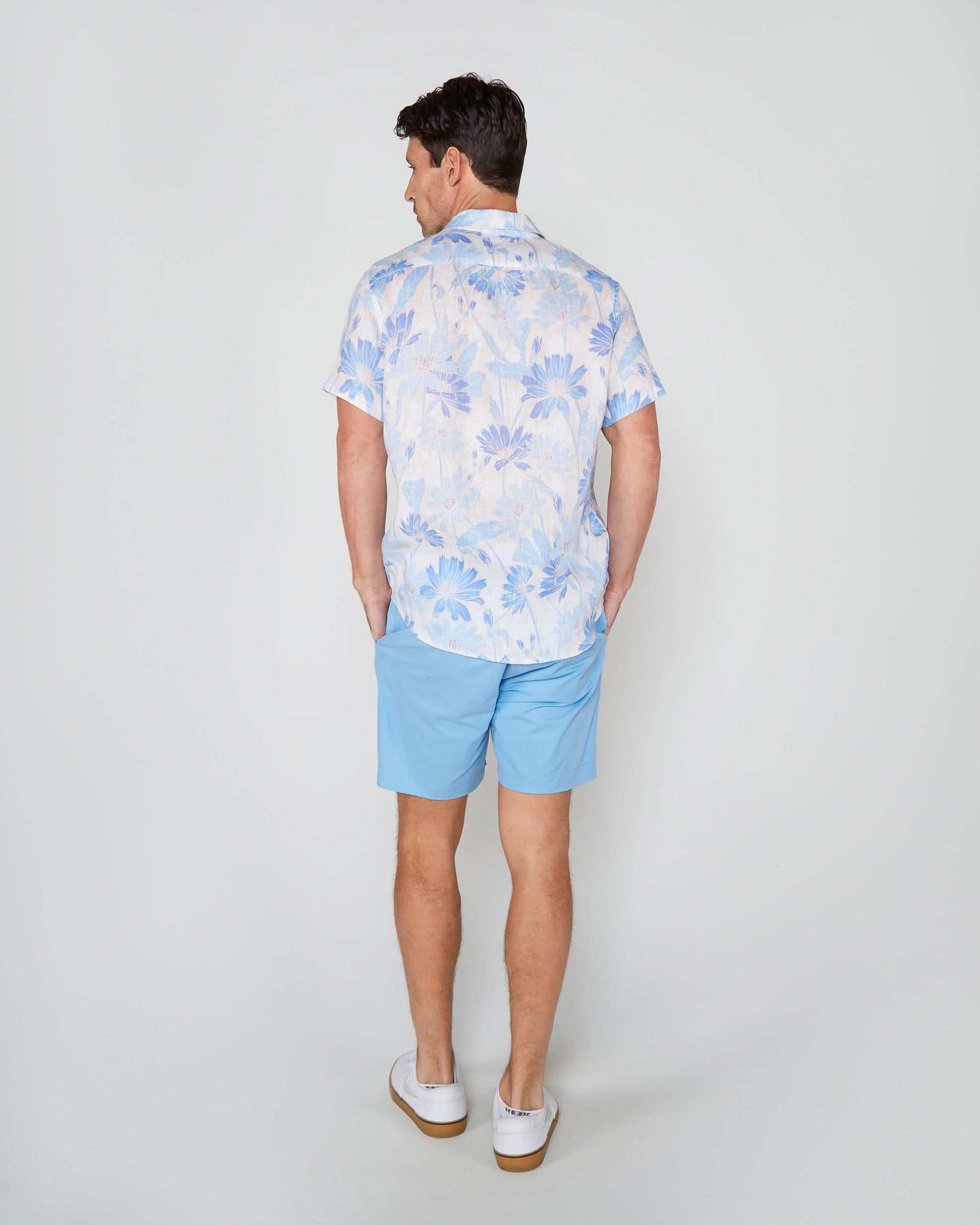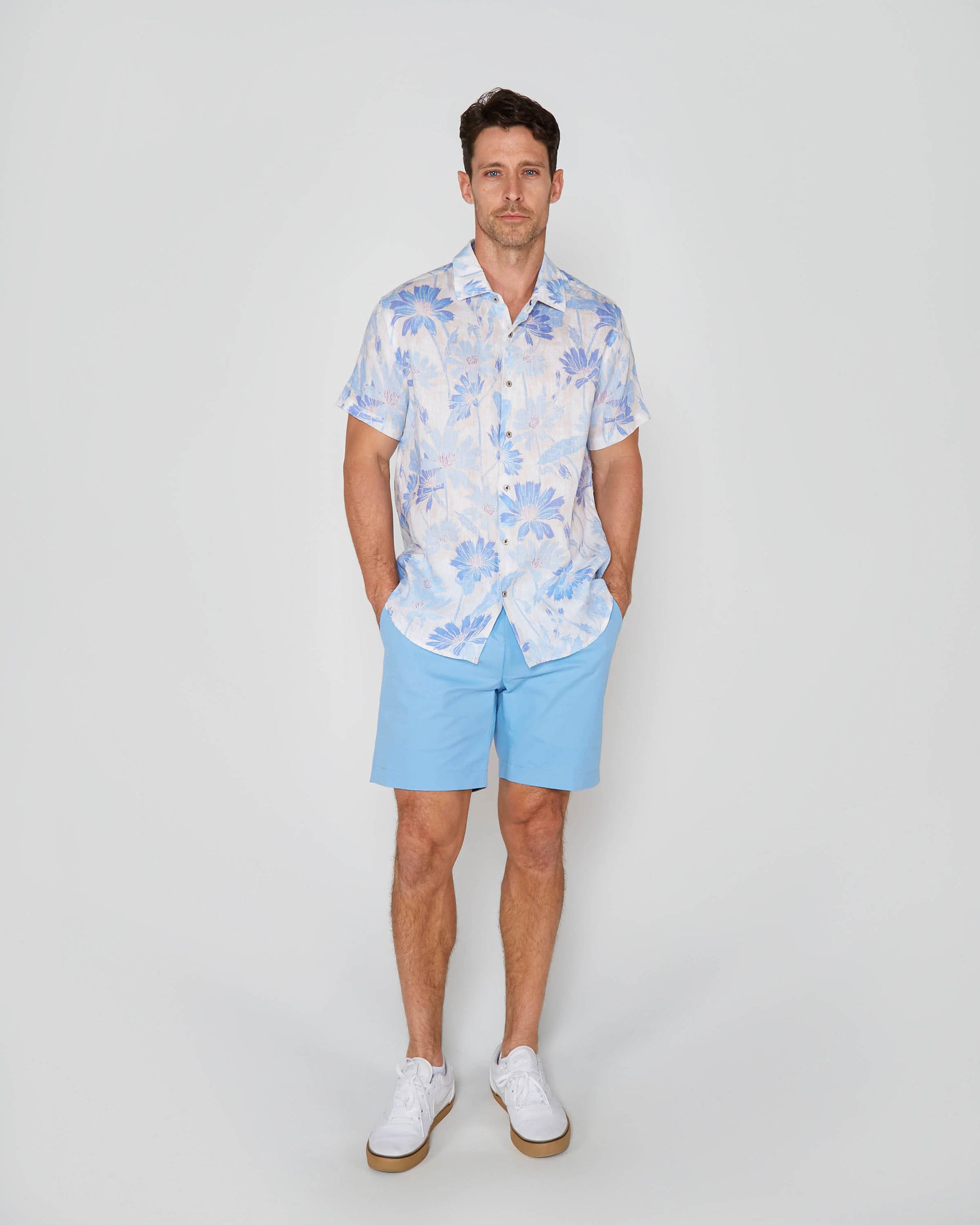 This short sleeve button-down shirt, crafted from 100% premium linen, offers a perfect combination of relaxed elegance and unique style. The lightweight, breathable fabric ensures comfort in warm weather, while the subtle texture of the linen provides a laid-back yet refined look. Ideal for casual outings or beachside strolls, this shirt is both stylish and versatile, making it a standout piece in any wardrobe.