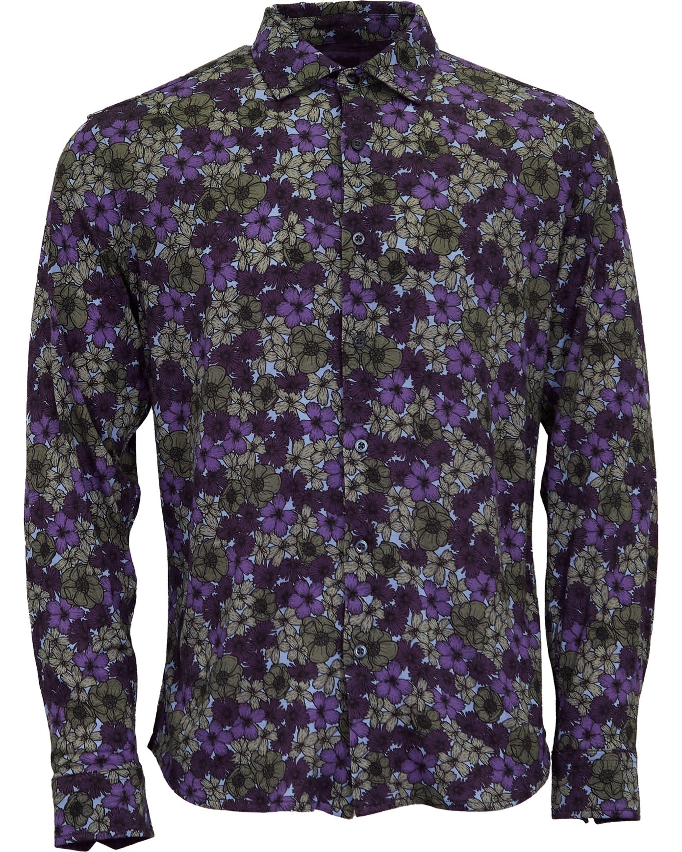 SHERLOCK DENSE FLORAL TAILORED MERINO SHIRT - OLIVE