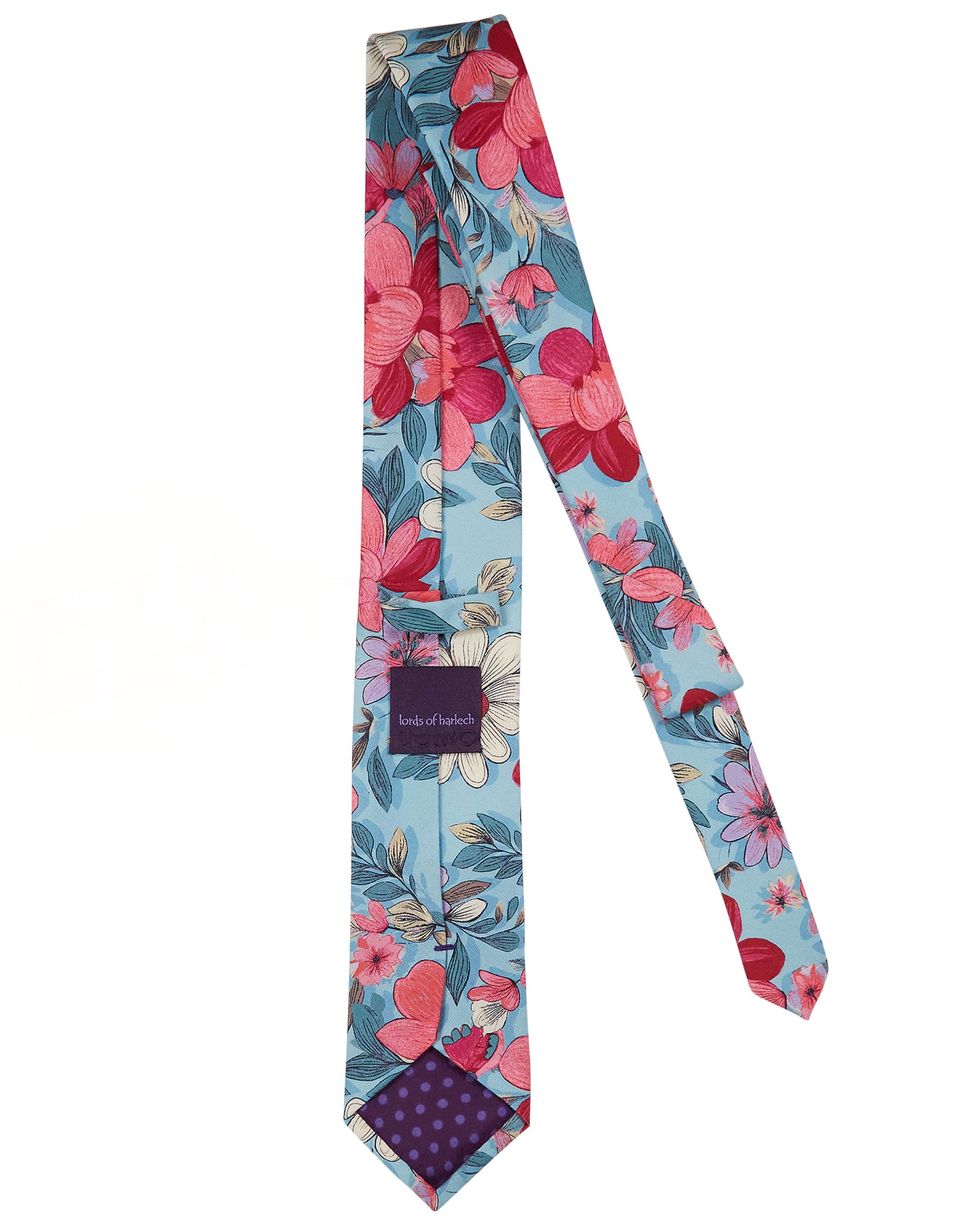 TADDEO CATALAN FLORAL MERINO TIE - TEAL